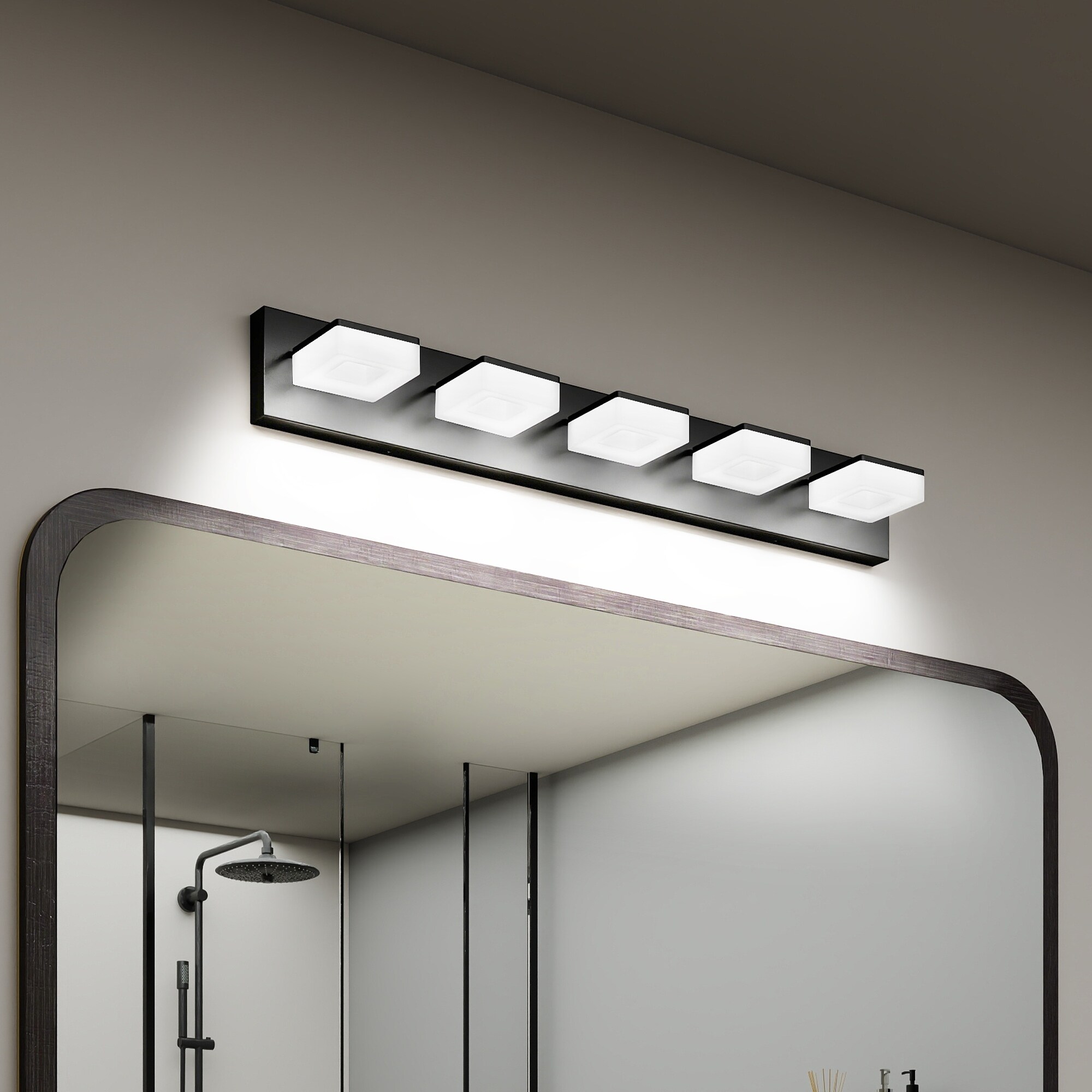 32" 5-Light Matte Black LED Vanity Light Acrylic Cool White 6000K