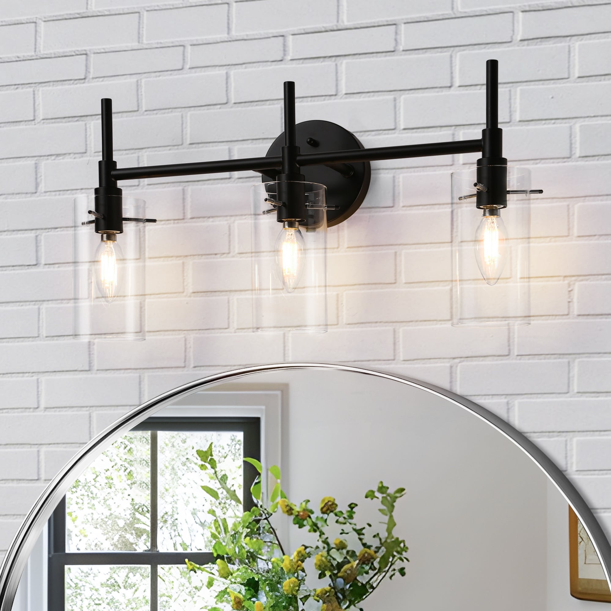 Modern 3-Light Matte Black Dimmable Bathroom Vanity Lights Cylinder Shade Wall Sconces with Clear Glass - 20" L x 6" W x 10.5" H
