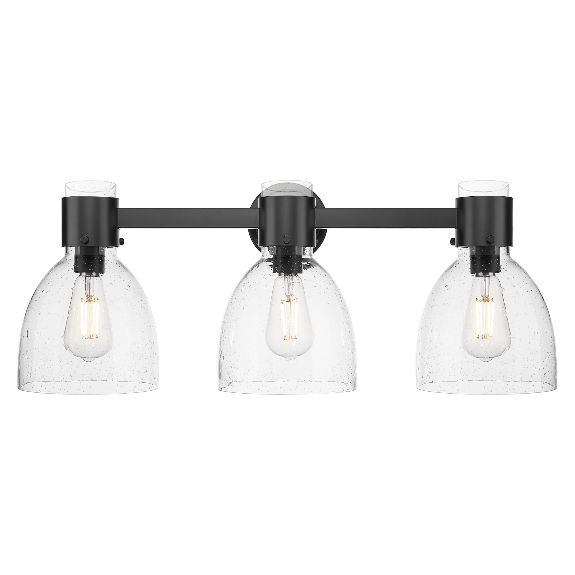 17" Retro 3-Light Bathroom Vanity Light Fixture - Black Finish with Crystal Glass Shades
