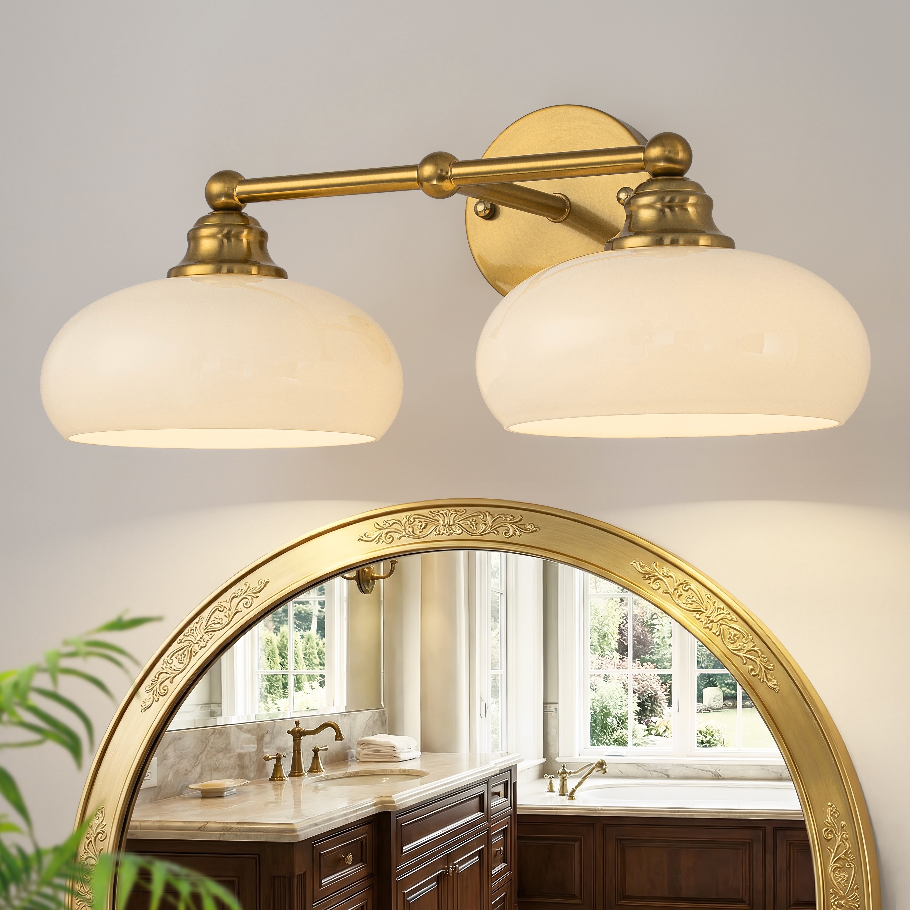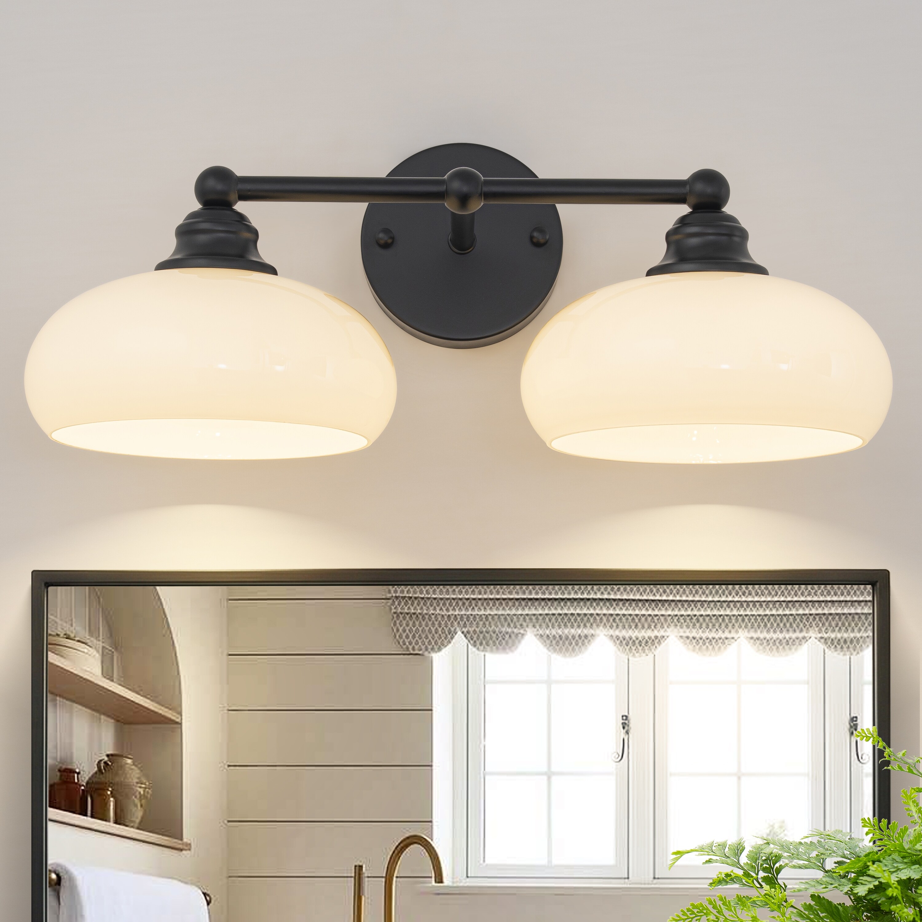 Starsky 2-Light Wall Sconce with Milk Glass Shades, Matte Black or Gold Bathroom Light Fixture for Vanity Mirror