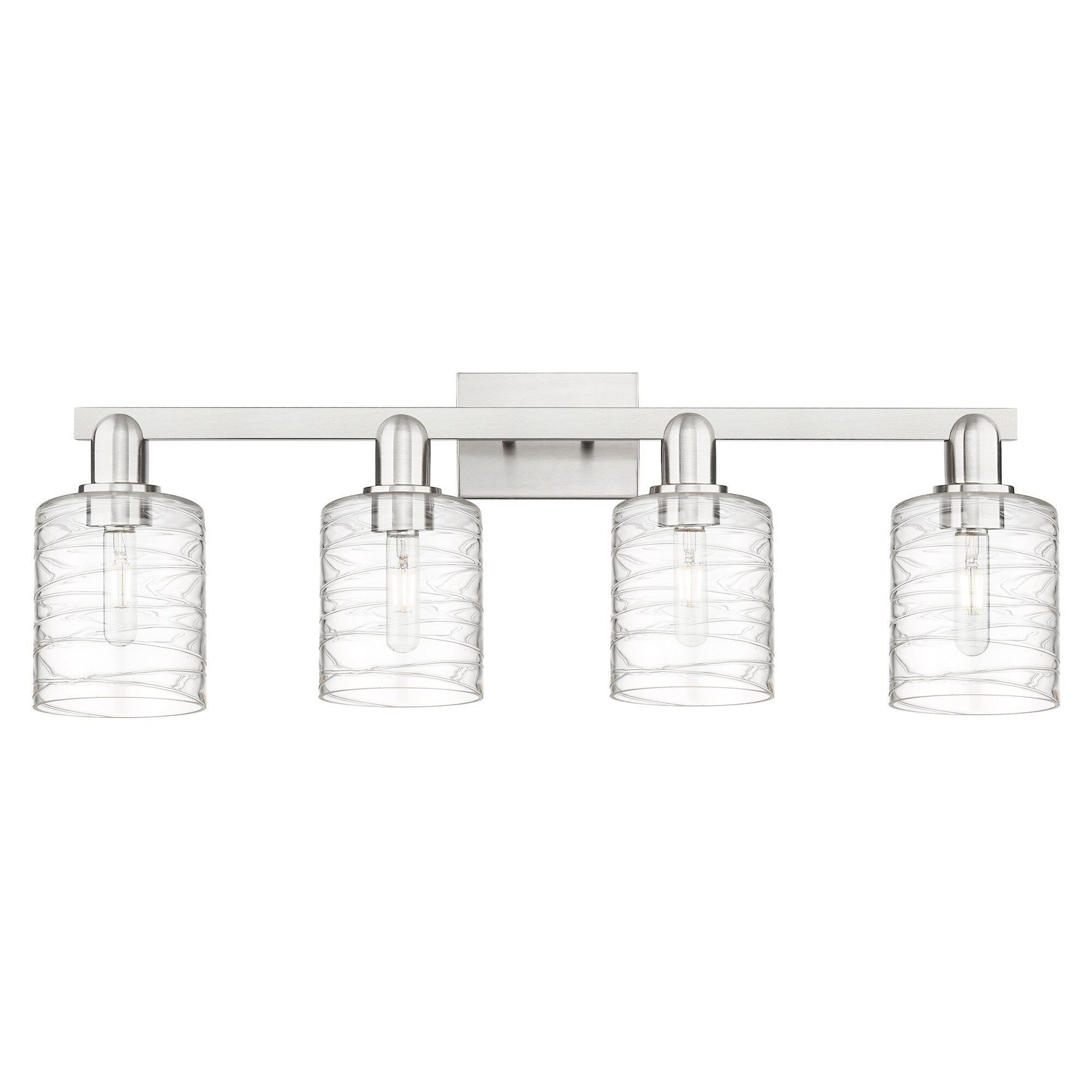 Luxury Industrial Polished Nickel/ Glass Bathroom Vanity Light by Urban Ambiance - 11-1/4"H x 35-3/4"W x 8-1/2"Dep