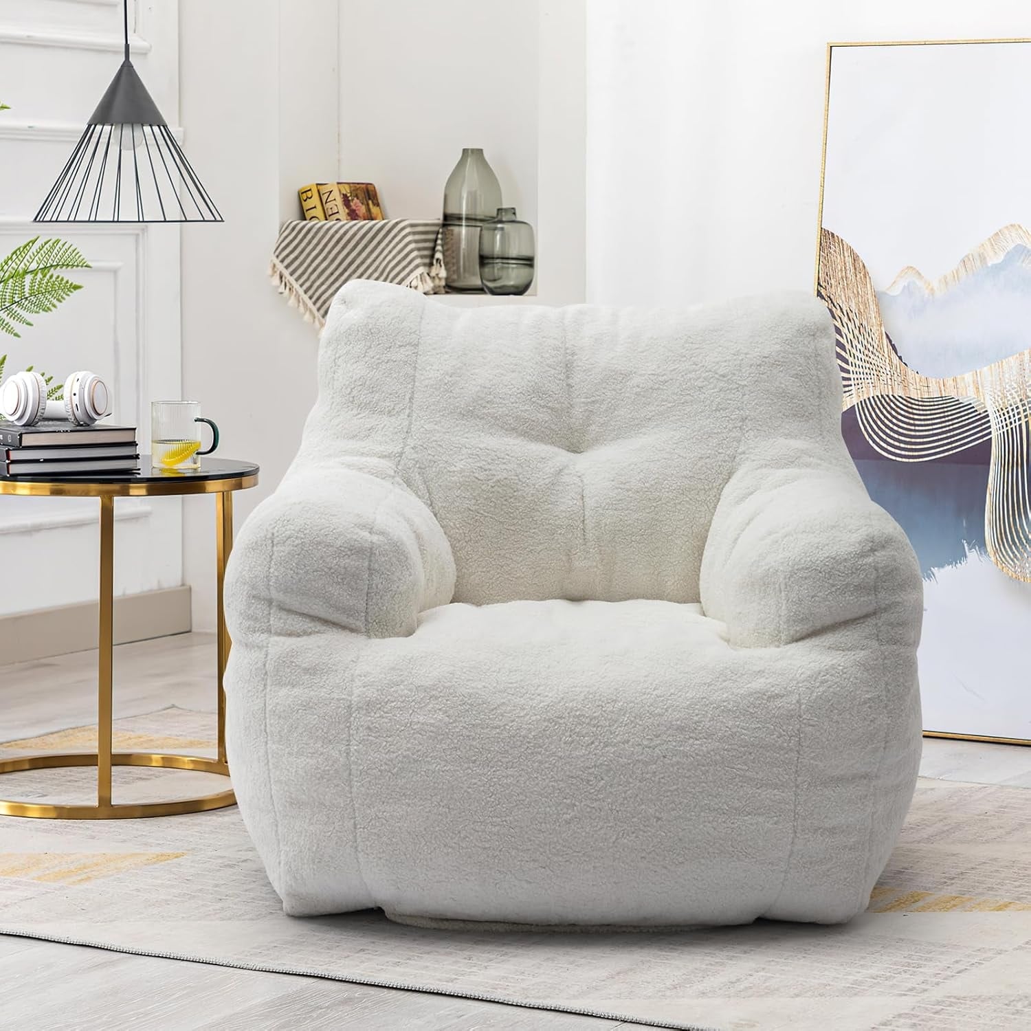 Large Bean Bag Chair for Adults with Armrest, Comfy Foam-Filled Lazy Sofa, Soft Teddy Fabric, Tufted Design, Dorm Bedroom Gaming