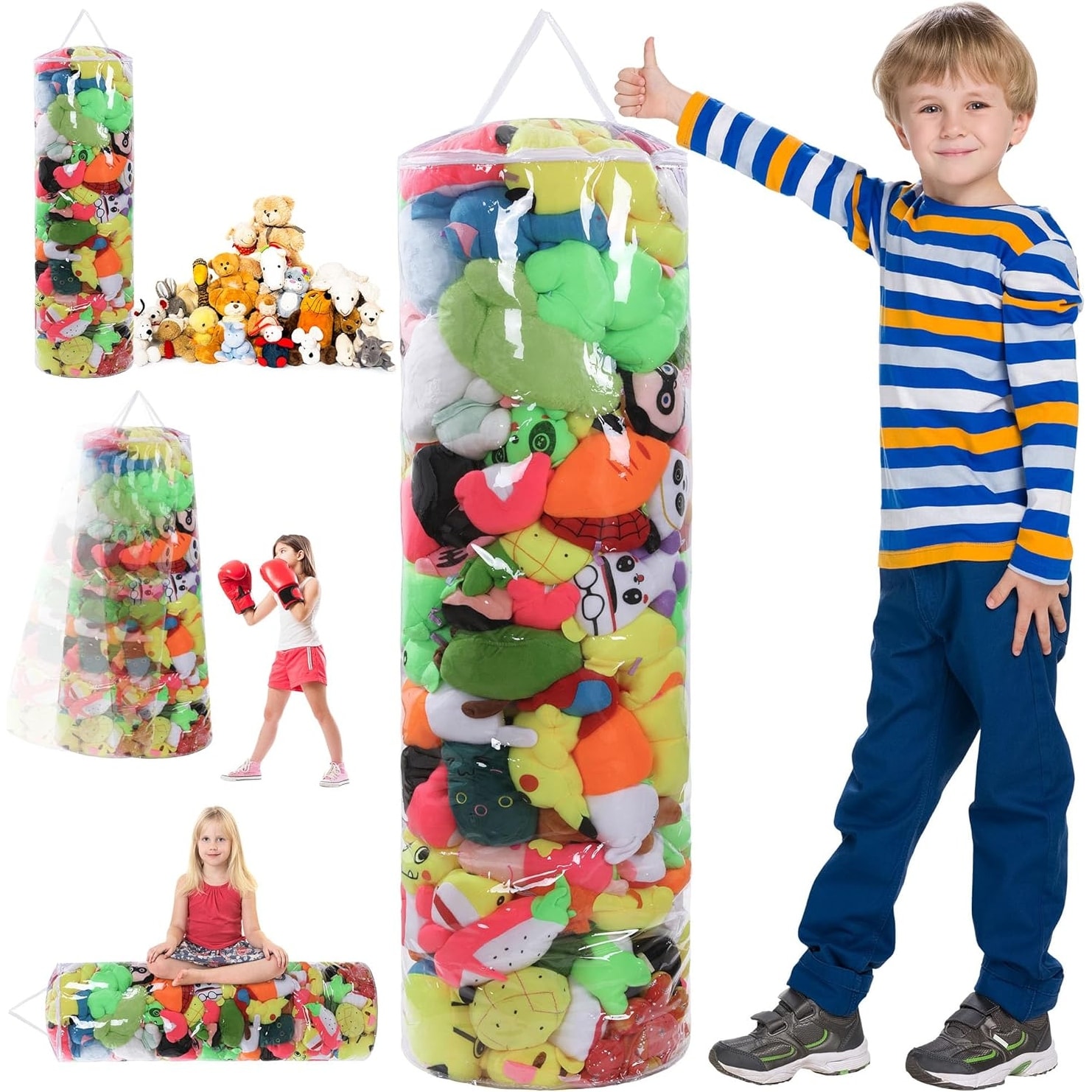 Waterproof Stuffed Animal Storage Bag for Kids, Portable Cylinder Cover for Organizing Rooms (47.2x13.8x13.8in)