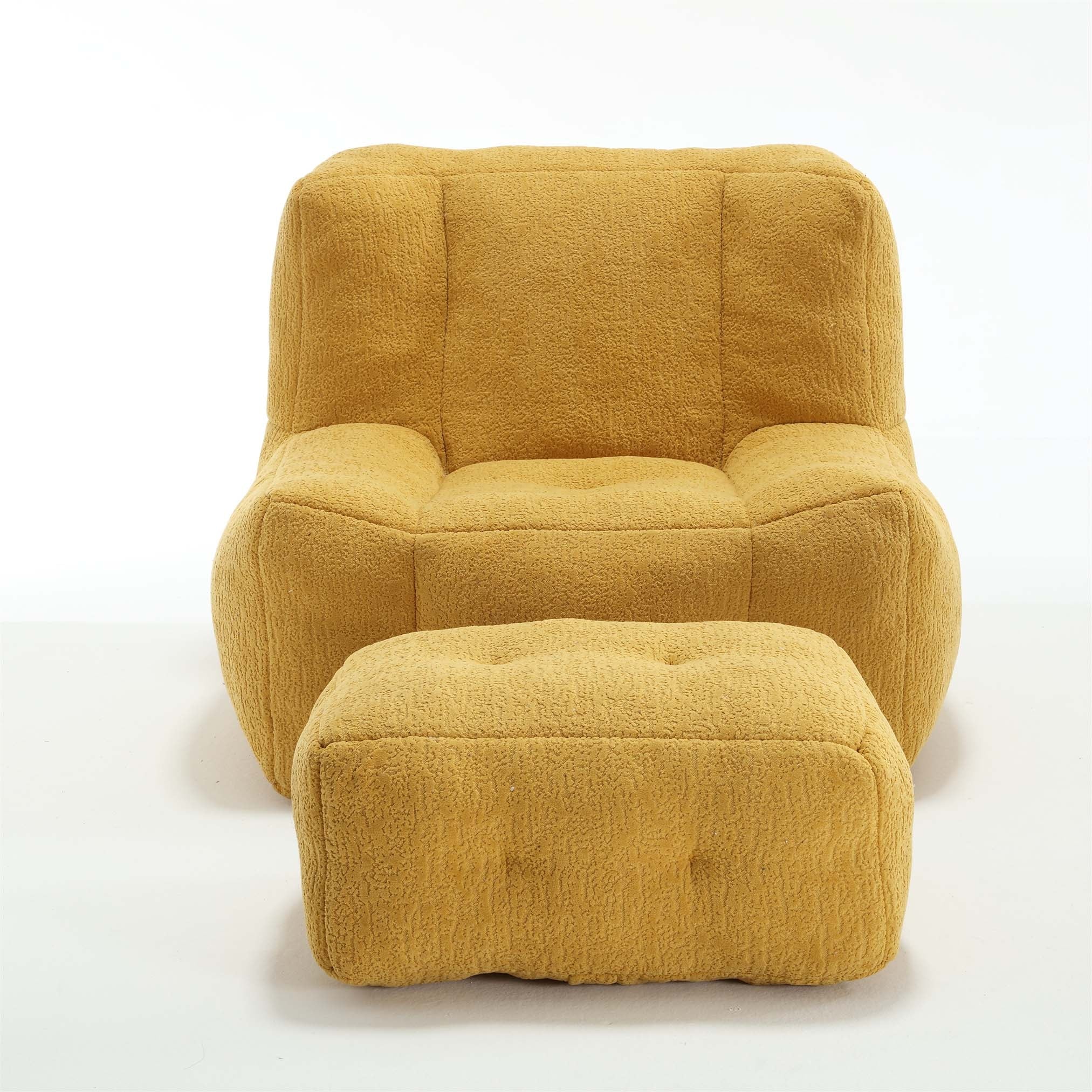 Modern fluffy beanbag chair, lazy sofa chair with footstool