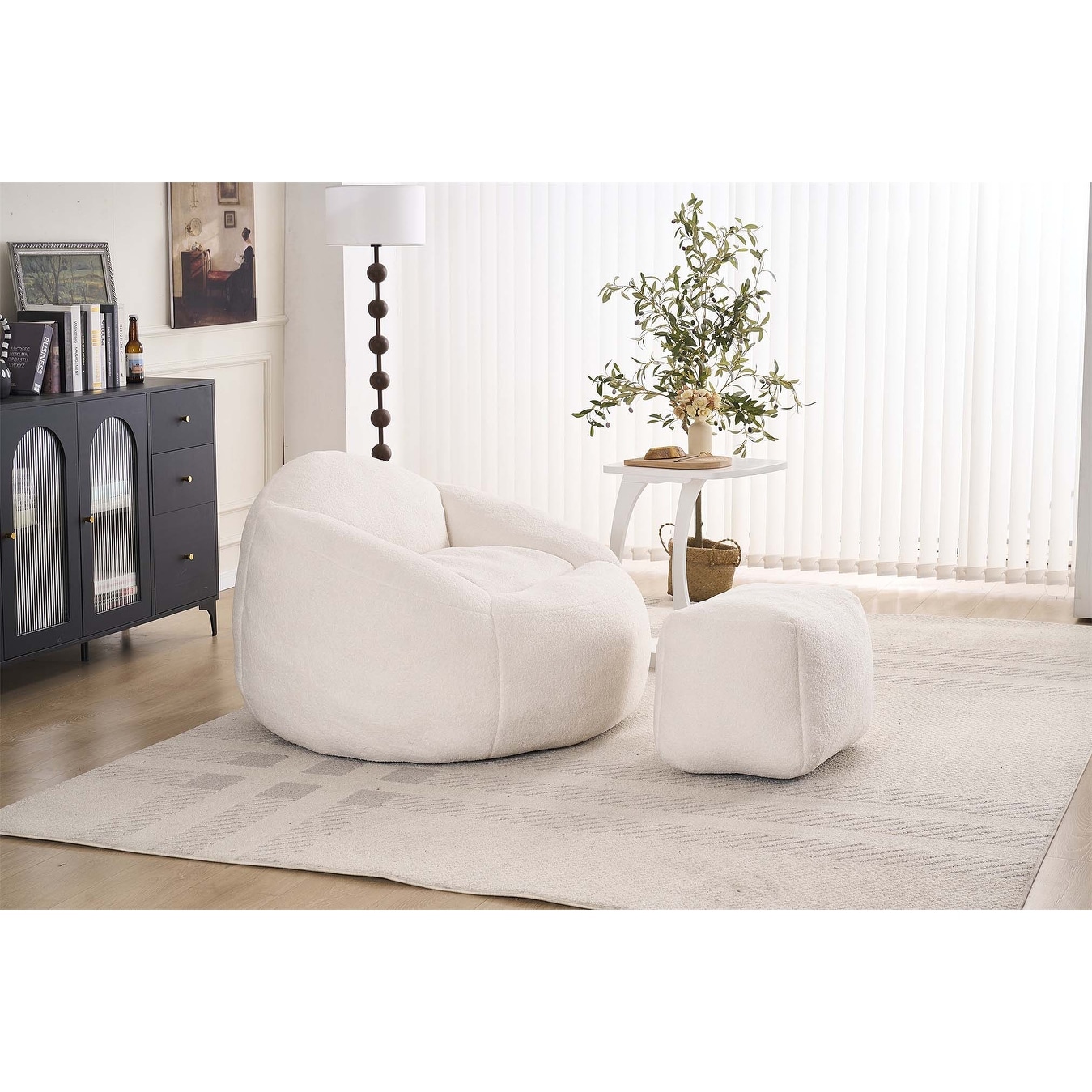 Giant Shell-Shaped Faux Fur Bean Bag Chair with Footstool
