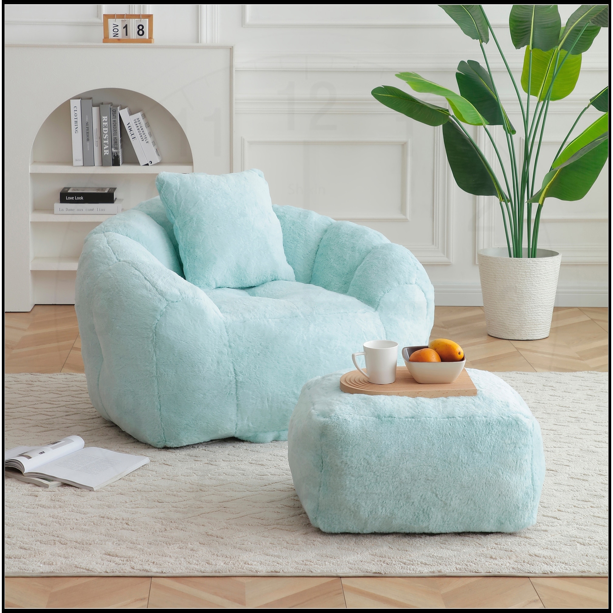 Shell-Shaped Large Bean Bag Chair with Footstool
