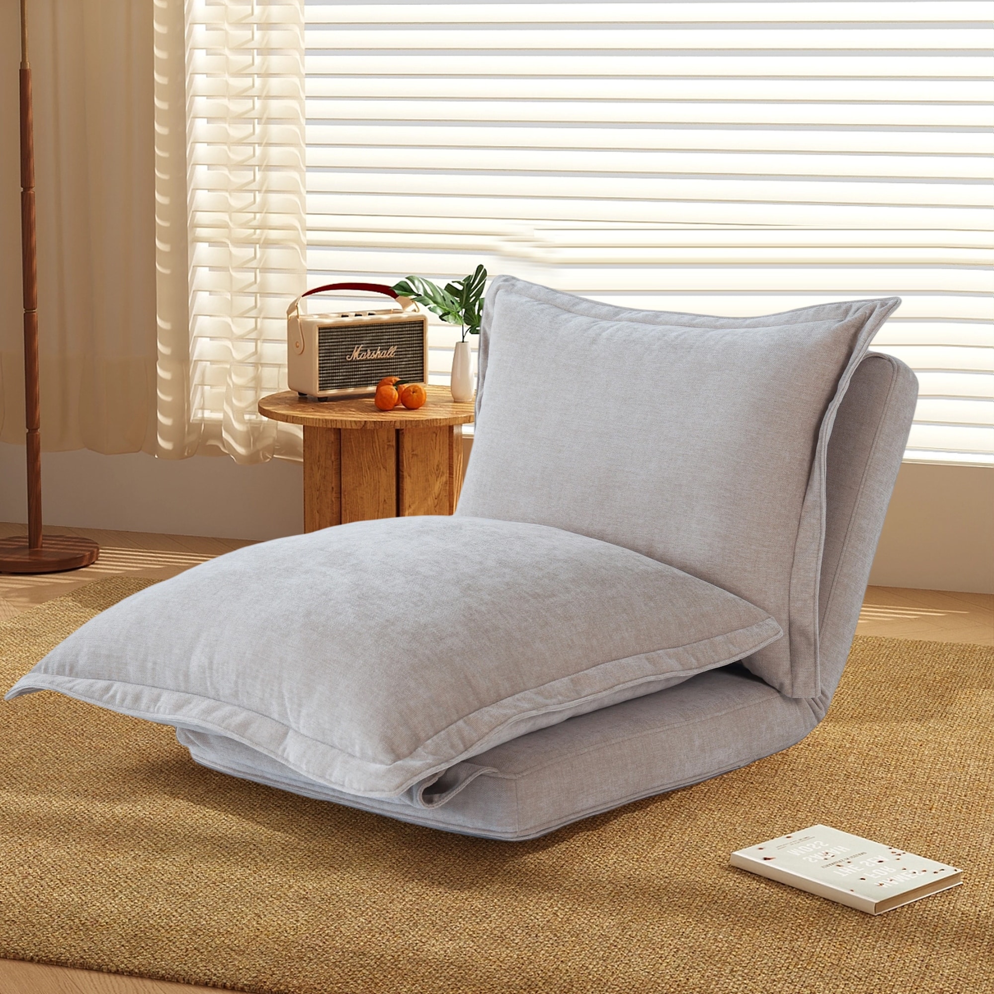 Convertible Flip Chair: Floor SofaBed with Adjustable Backrest andPillows-Beige