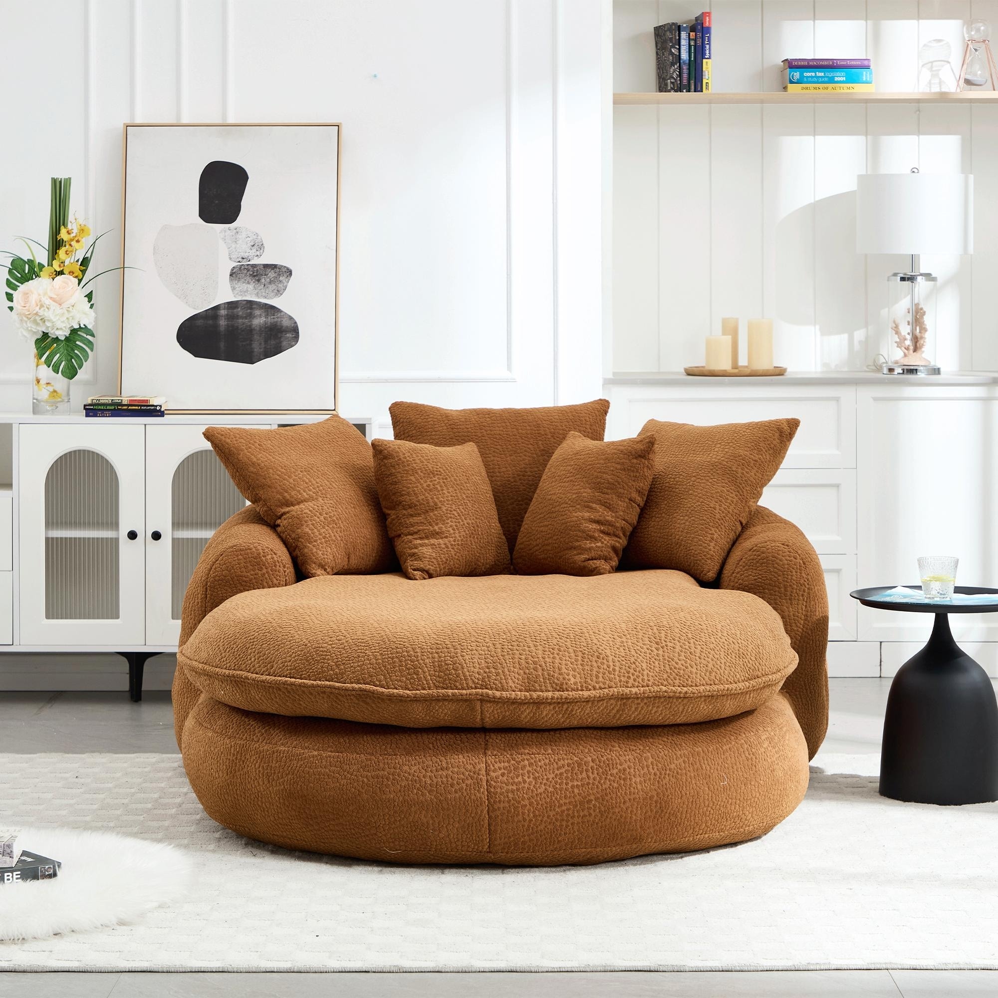 Oversized Oval Upholstered Bean Bag Sofa - Lazy Sofa with 3 Large Pillows and 2 Small Pillows