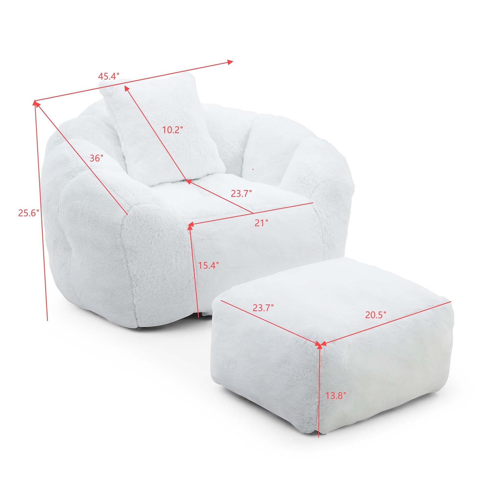 Giant Bean Bag Chair with Footstool, Oversized for Adults and Kids, Faux Fur Shell-Shaped Sofa for Comfort and Style