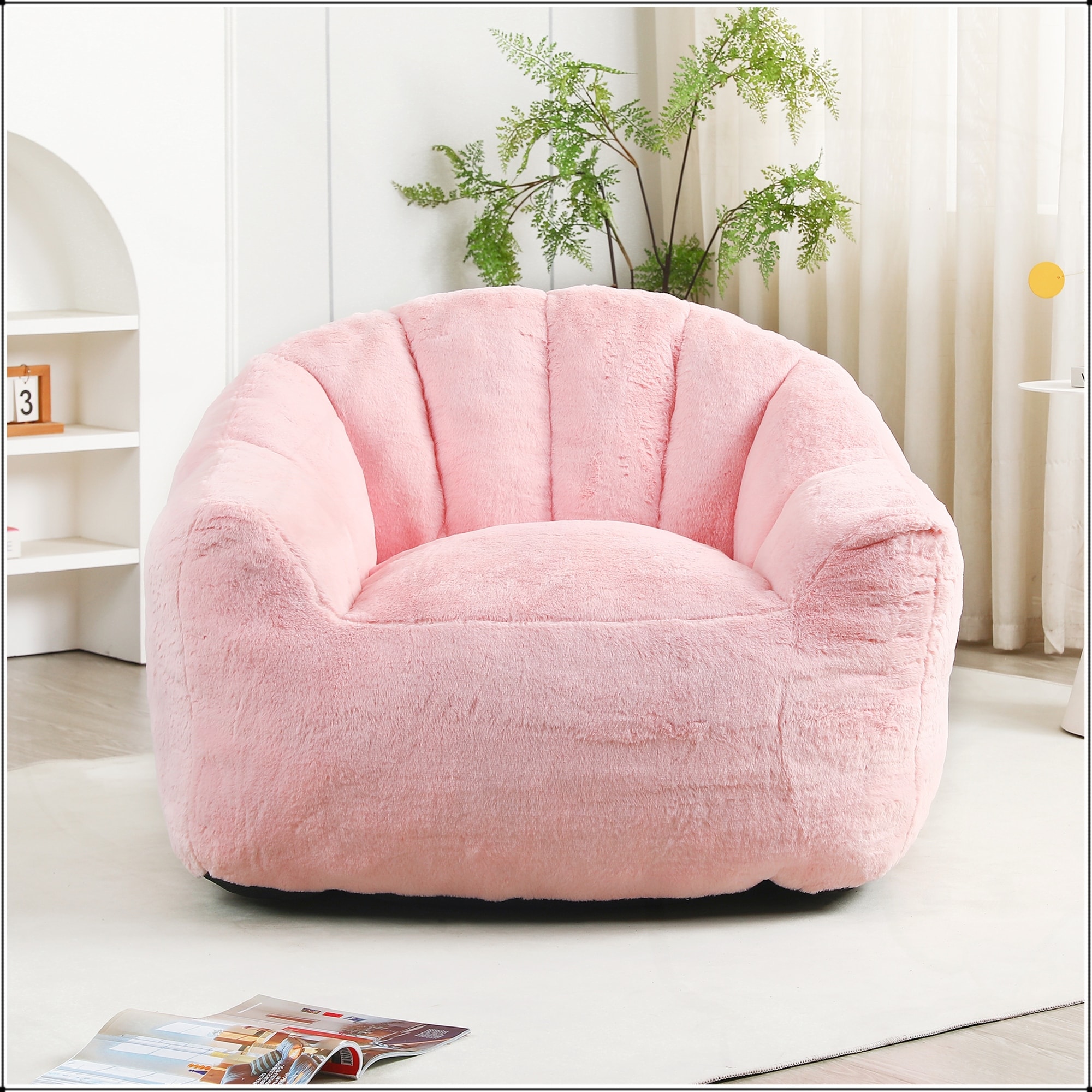 Faux Fur Shell-Shaped Bean Bag Chair, Oversized Adults Bean Bag Sofa, Bean Bag Lazy Chair with Armrests for Gaming, Reading