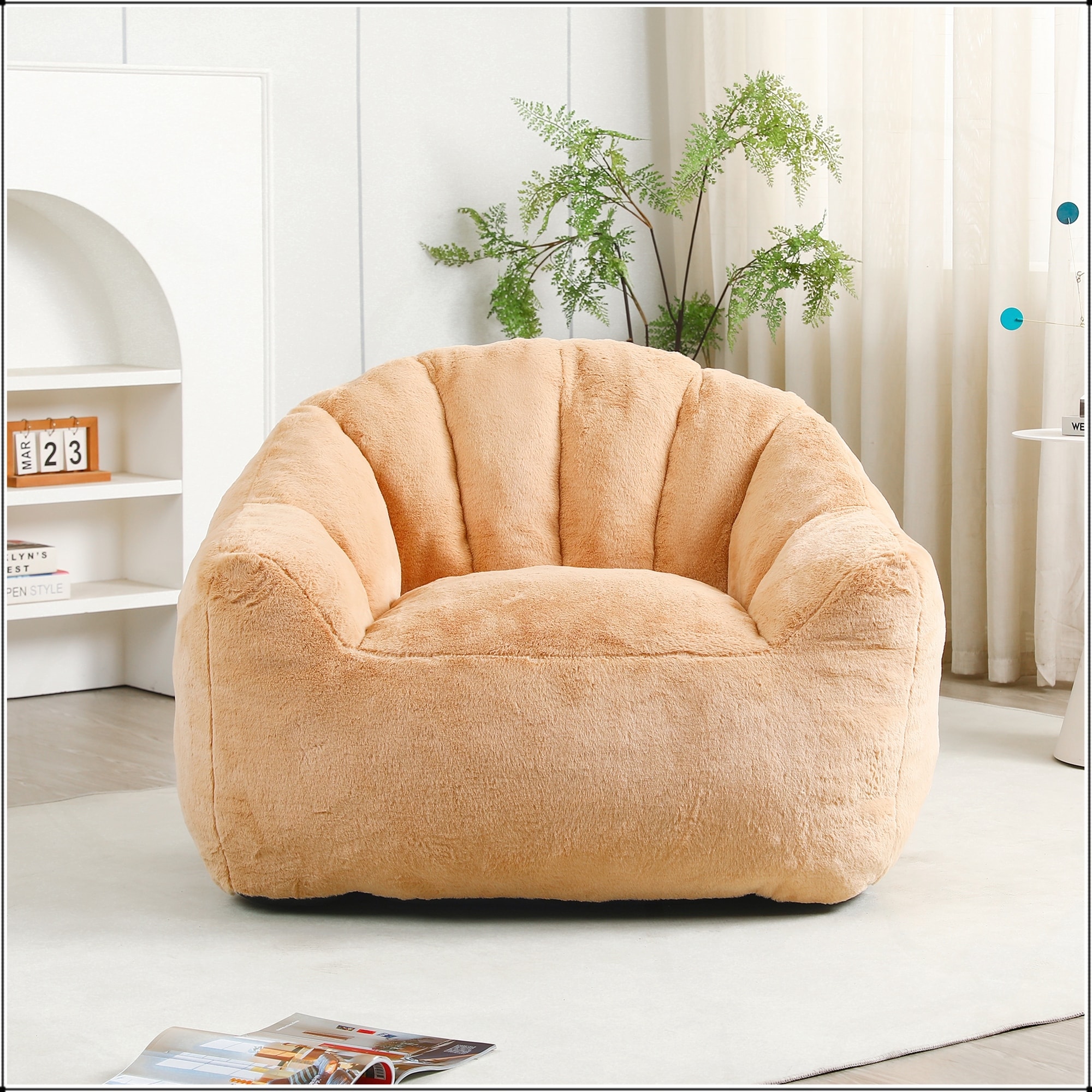 Faux Fur Shell-Shaped Bean Bag Chair, Oversized Adults Bean Bag Sofa, Bean Bag Lazy Chair with Armrests for Gaming, Reading