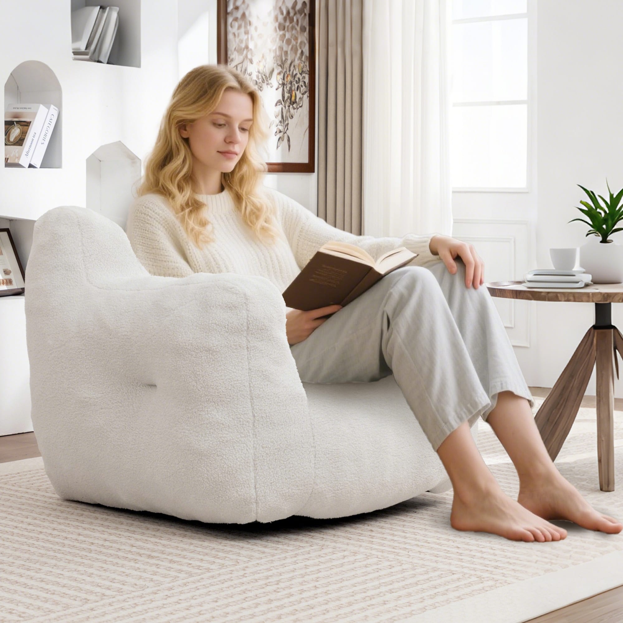 HOMEFUN Teddy Fabric Upholstered High-Density Foam Bean Bag Sofa Chair with Armrests
