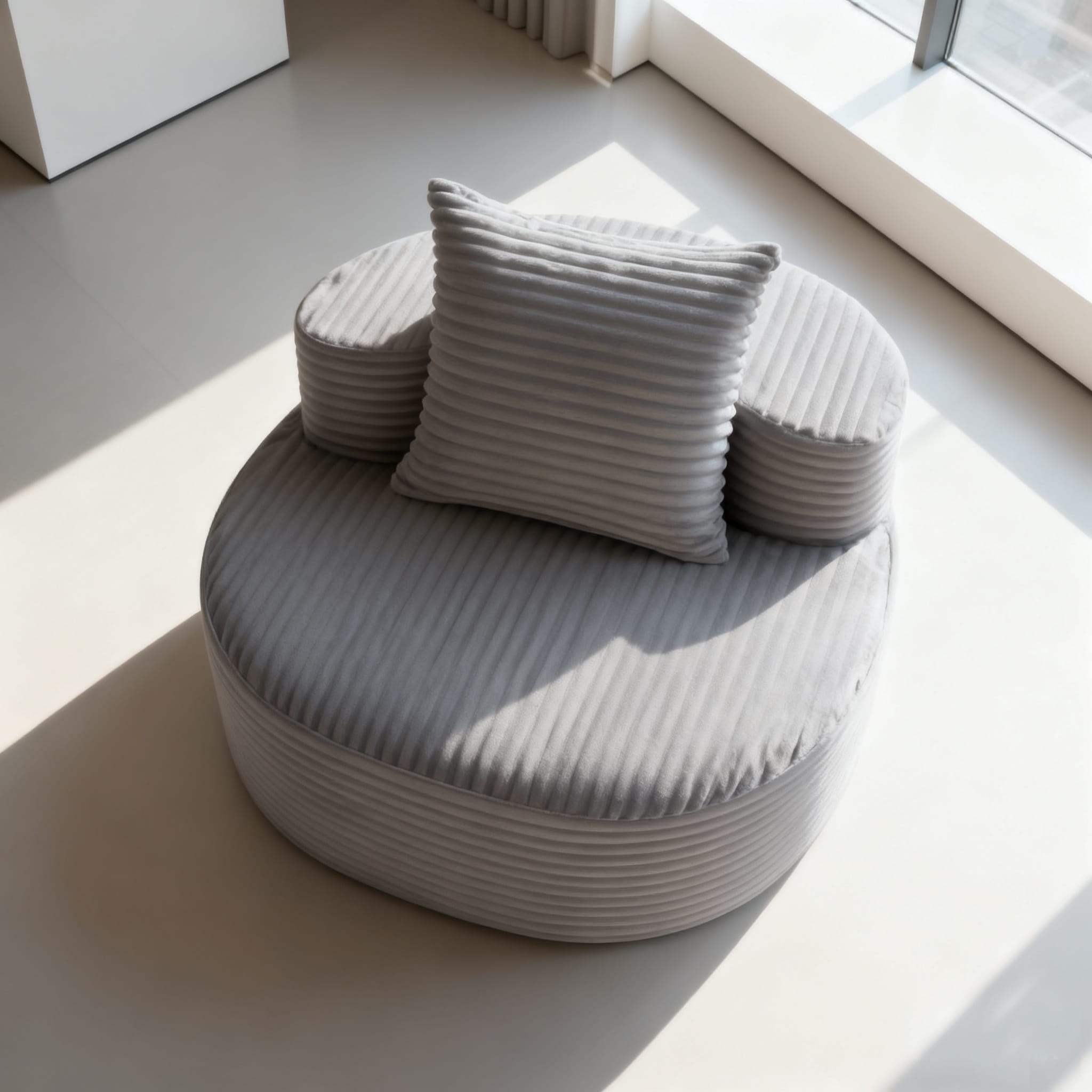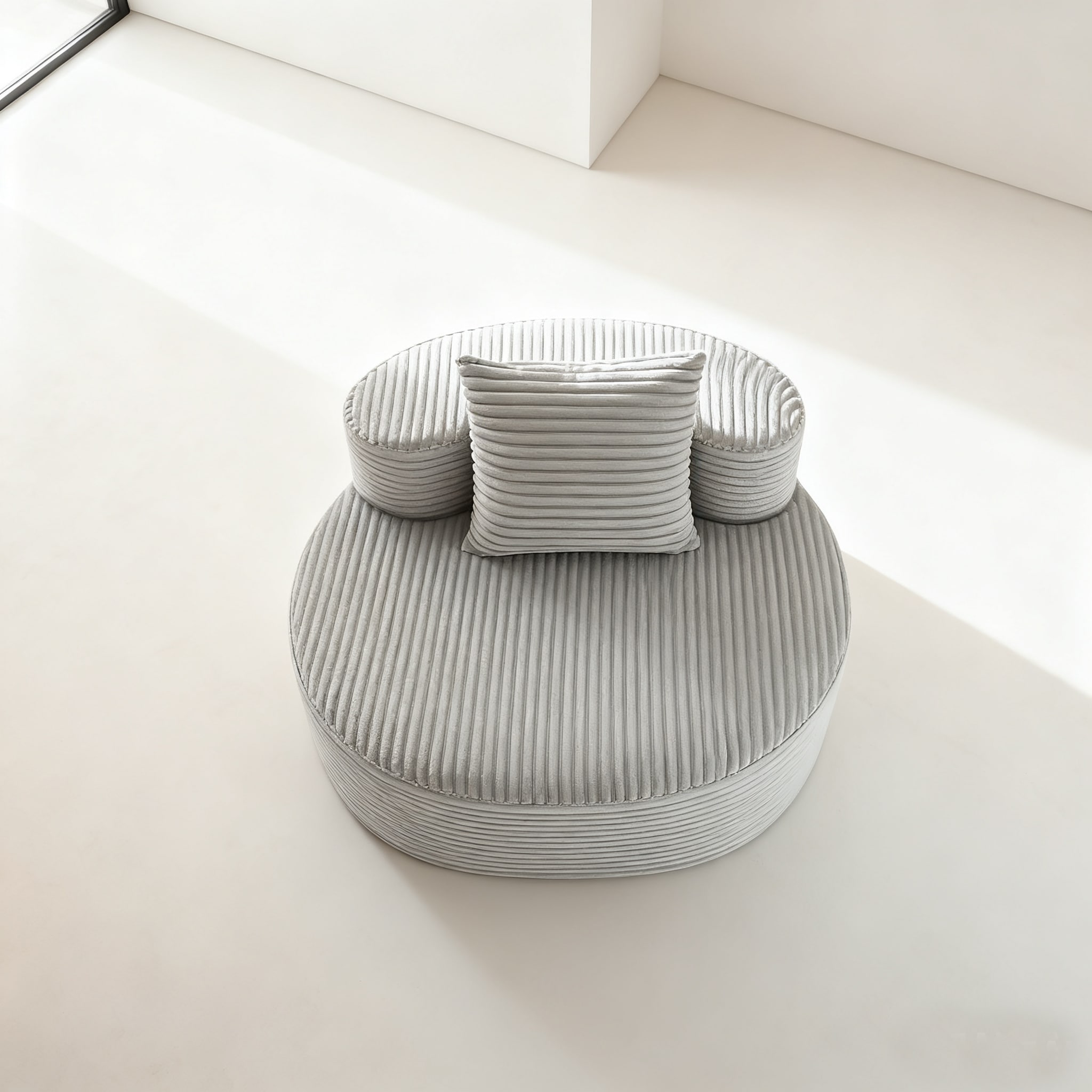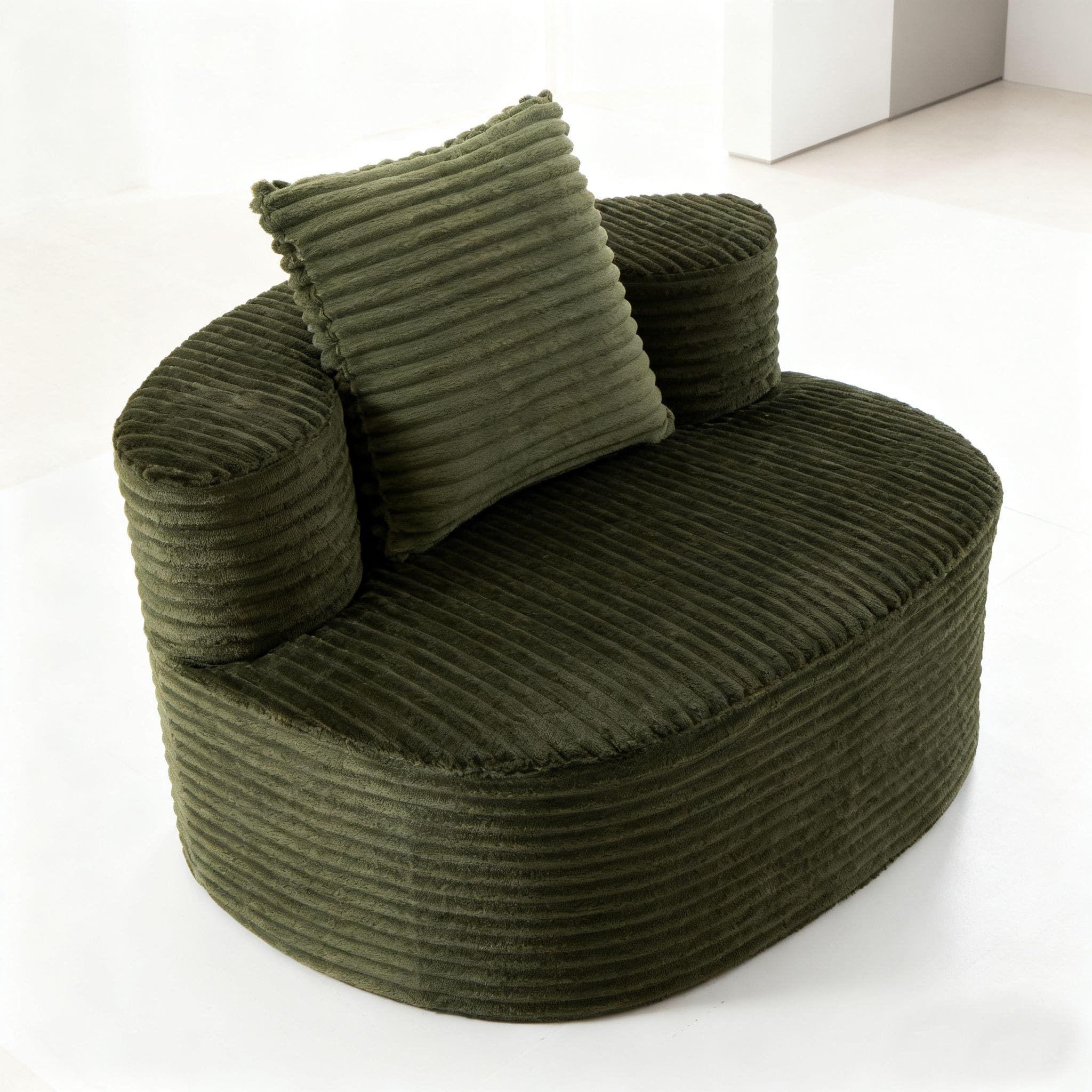Modern Round Bean Bag Chair with Lumbar Pillow, Plush Upholstered Lounge Chair for Living Room, Bedroom, Gaming & Reading Nook