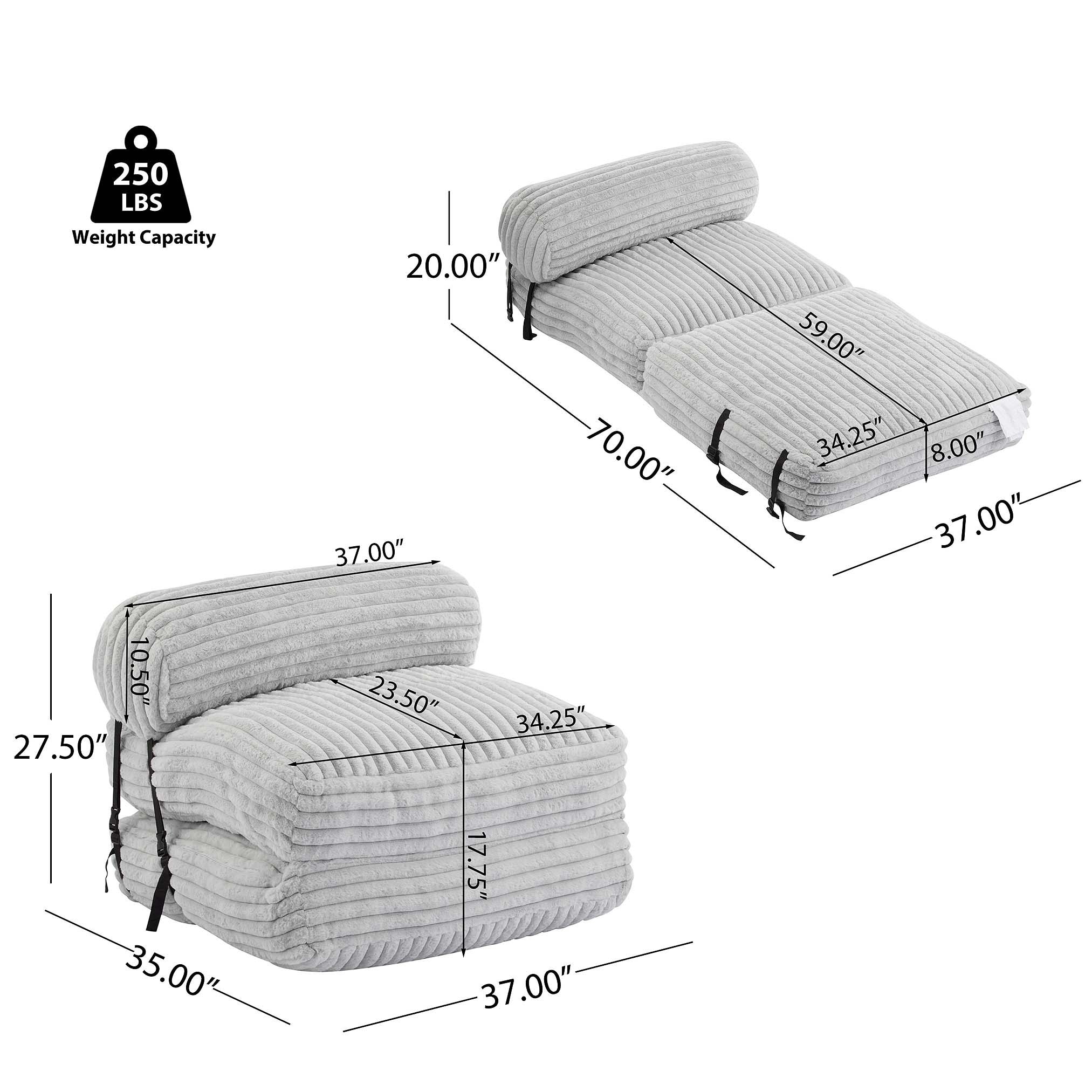 Indoor Foldable Bean Bag Lounge Chair, Gray, 2-in-1 Convertible for Comfort and Space Efficiency