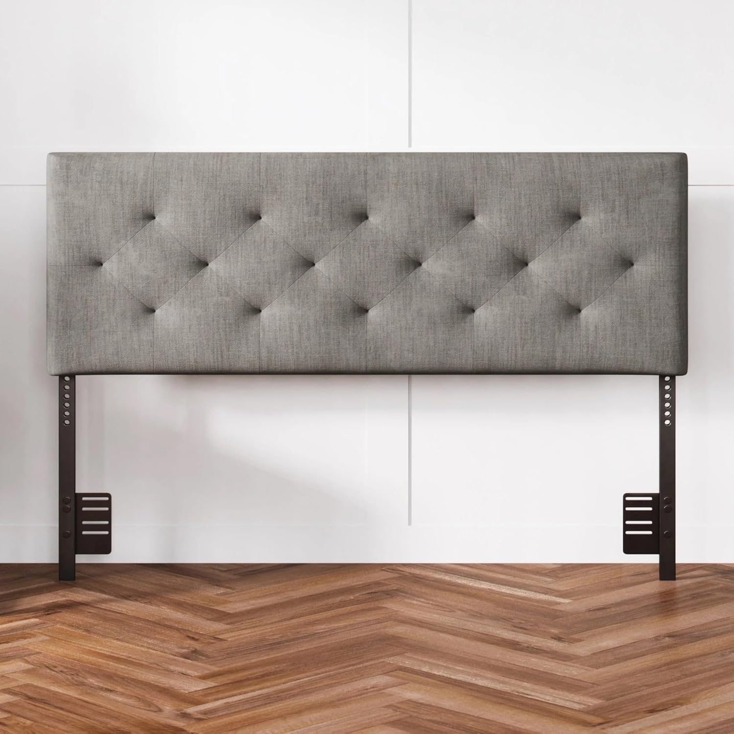 Diamond-Tufted Upholstered Headboard with Adjustable Height for Full/Queen Bed - Gray