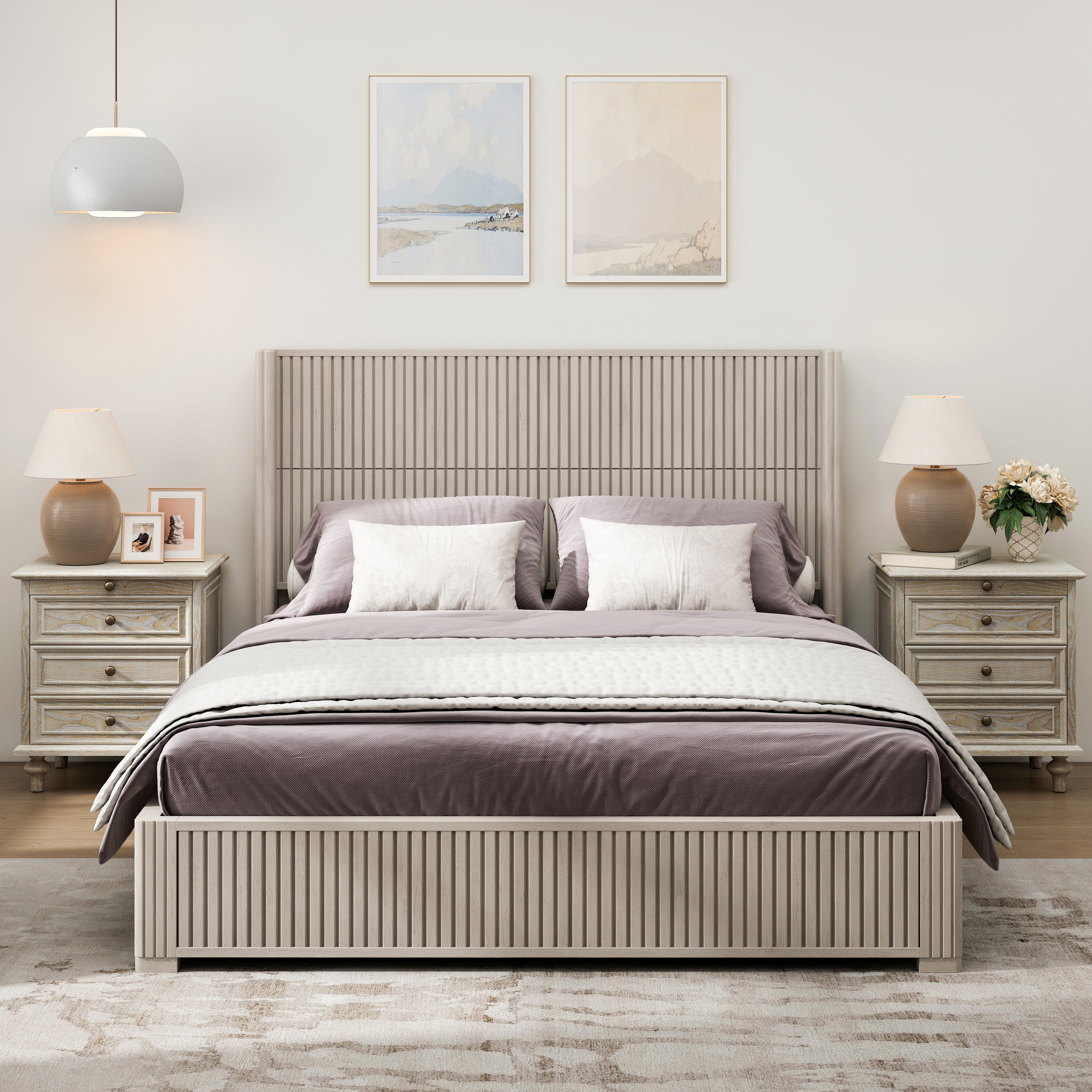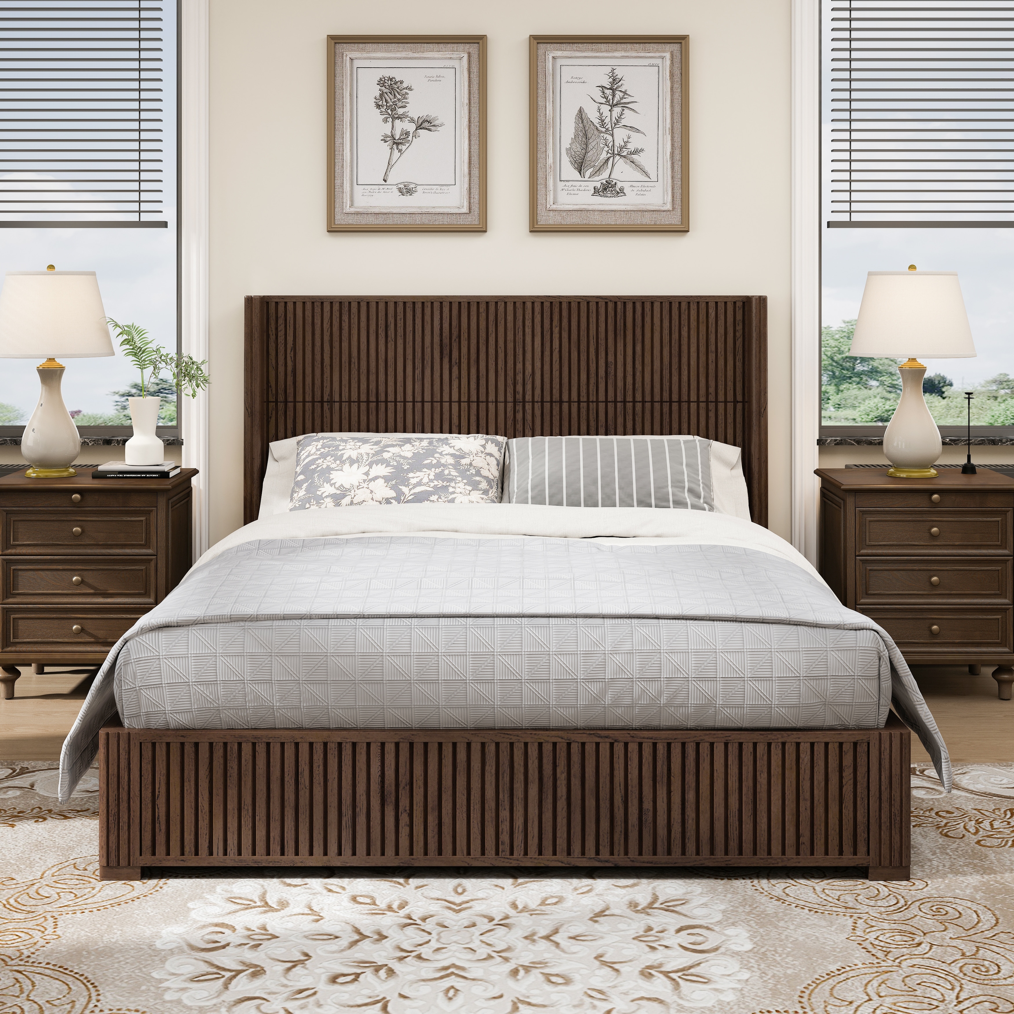 Queen Size Solid Wood Platform Bed Frame with Headboard, No Box Spring Needed, Floor-standing bed, Easy Assembly