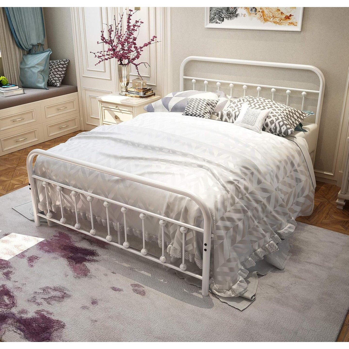 Queen Size Metal Bed Frame with Headboard and Footboard, Sturdy Platform Mattress Base, White