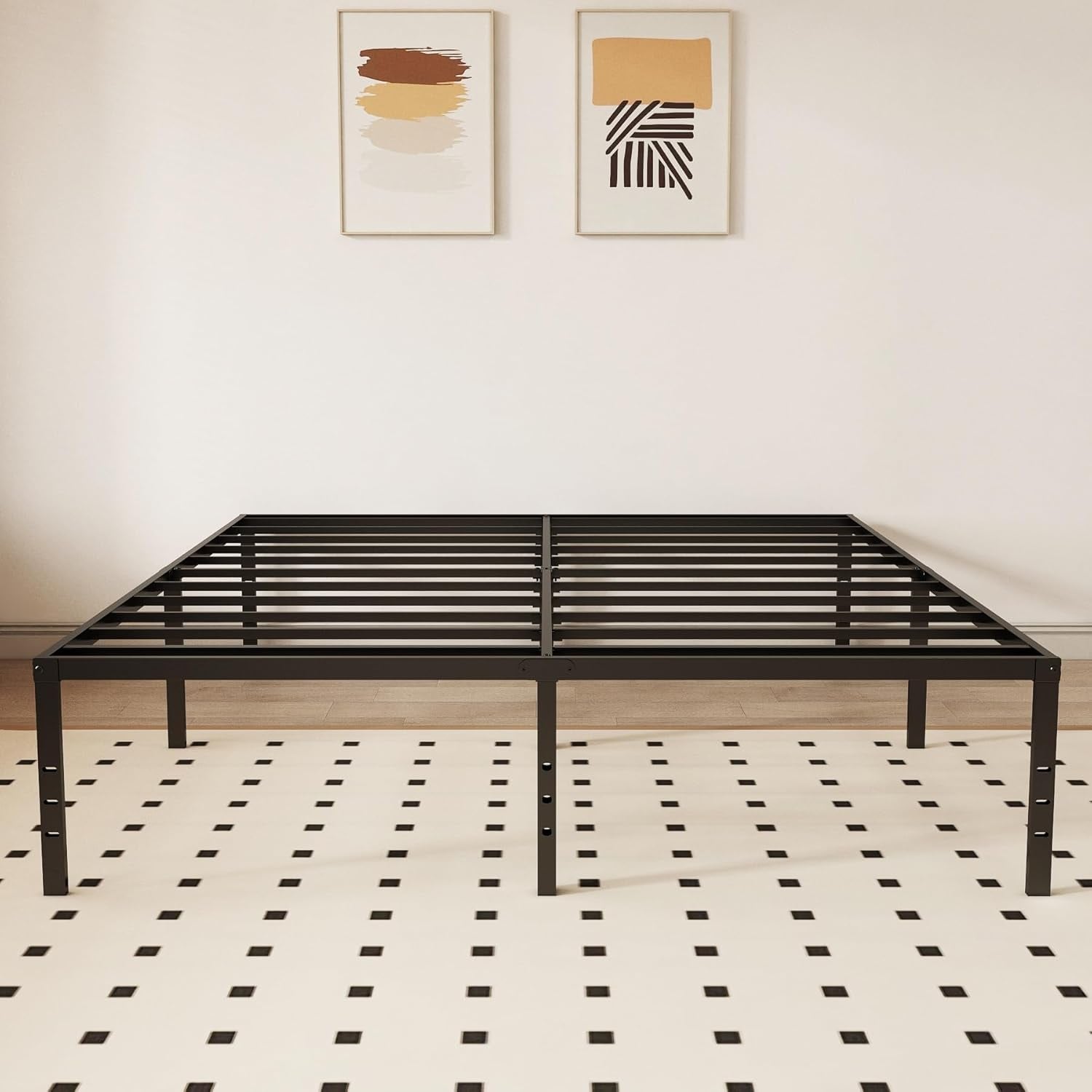 12 Inch King Size Metal Platform Bed Frame with Headboard, Noise-Free, Heavy Duty, Underbed Storage, Easy Assembly