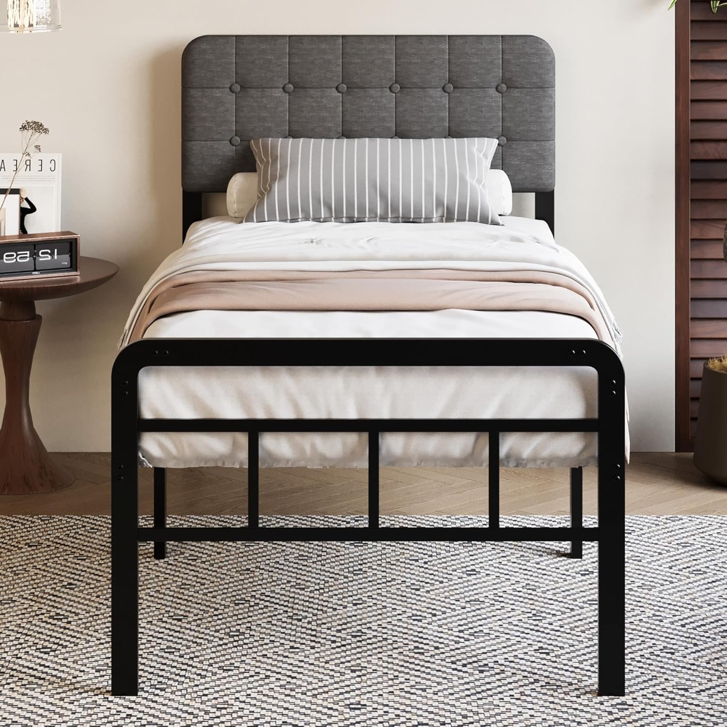 Twin Bed Frame with Upholstered Headboard, Heavy-Duty Platform, Noise Reduction, Adjustable Height, Easy Assembly