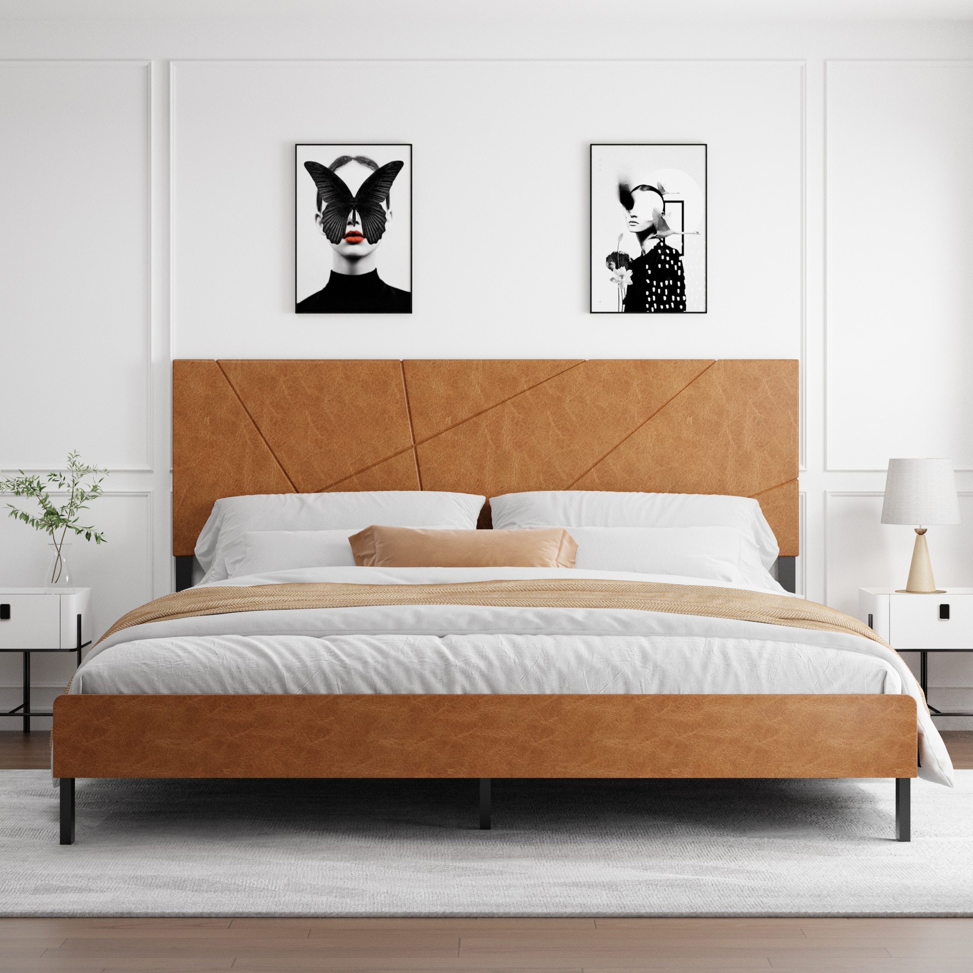 Boucle Upholstered Wingback Platform Bed in White