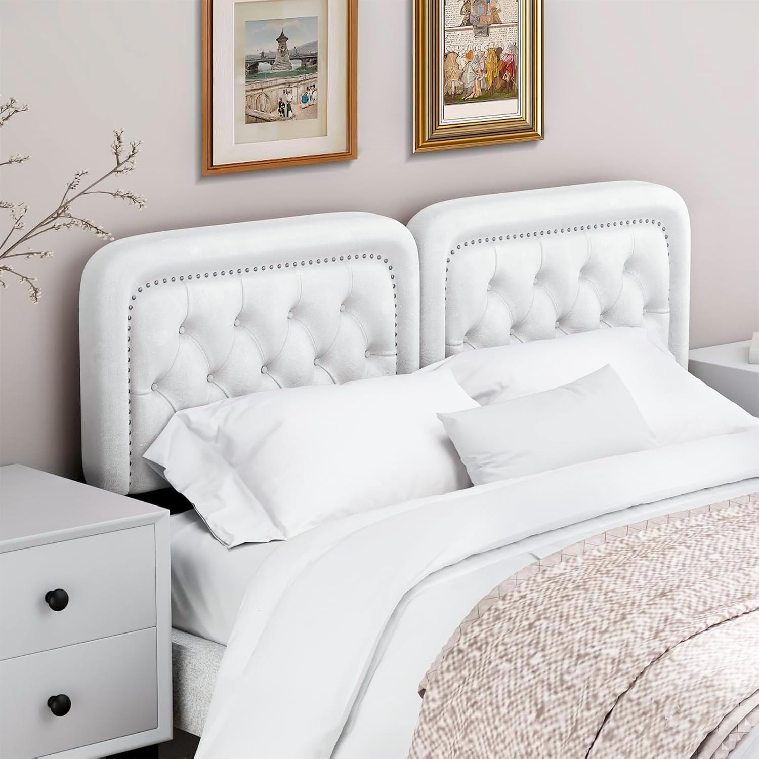 Tufted Upholstered King Size Headboard, Adjustable Height, Solid Wood, Beige, Ideal for Bedroom, Dorm, Guest Room
