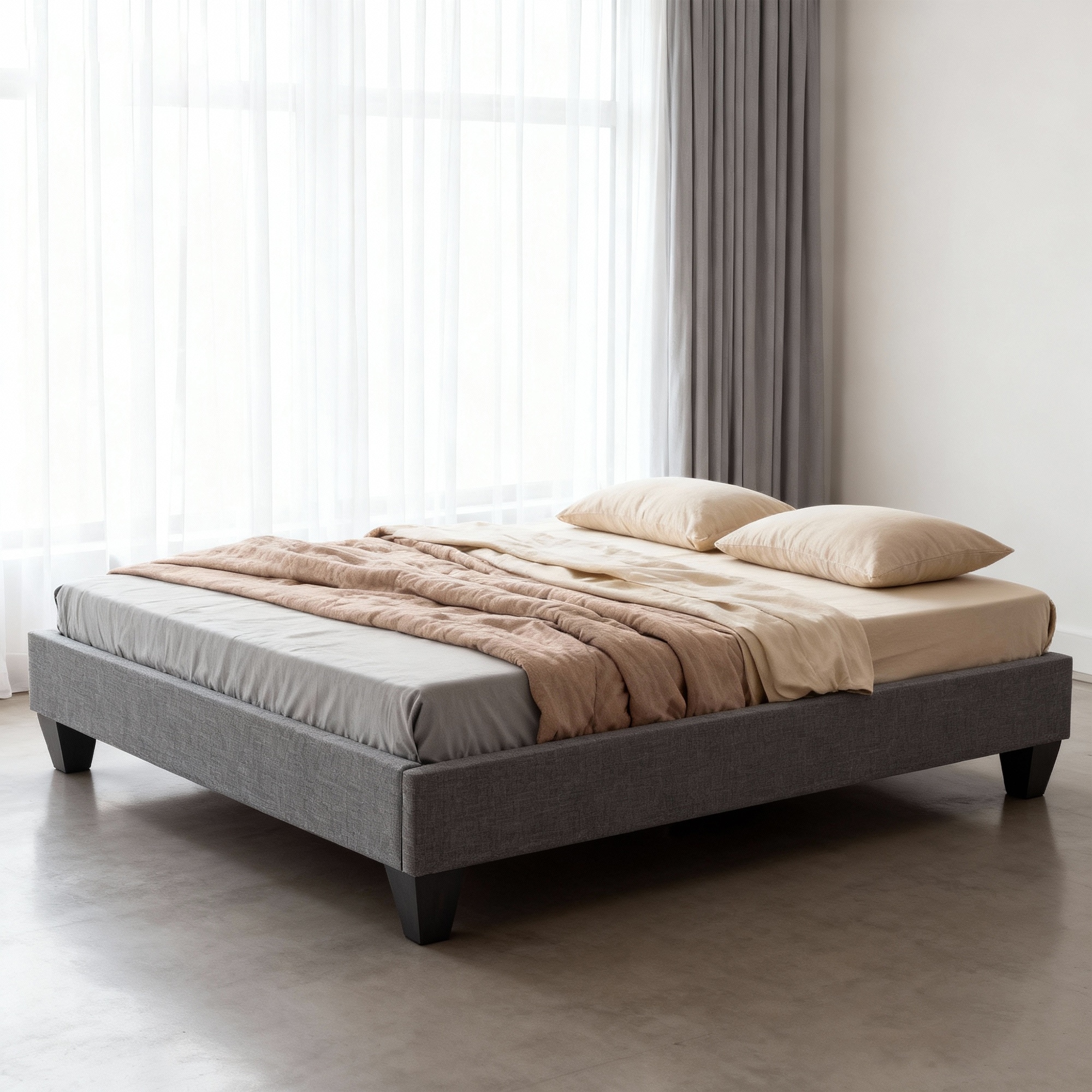 13" Modern Grey Full Platform Bed Frame, No Headboard Design