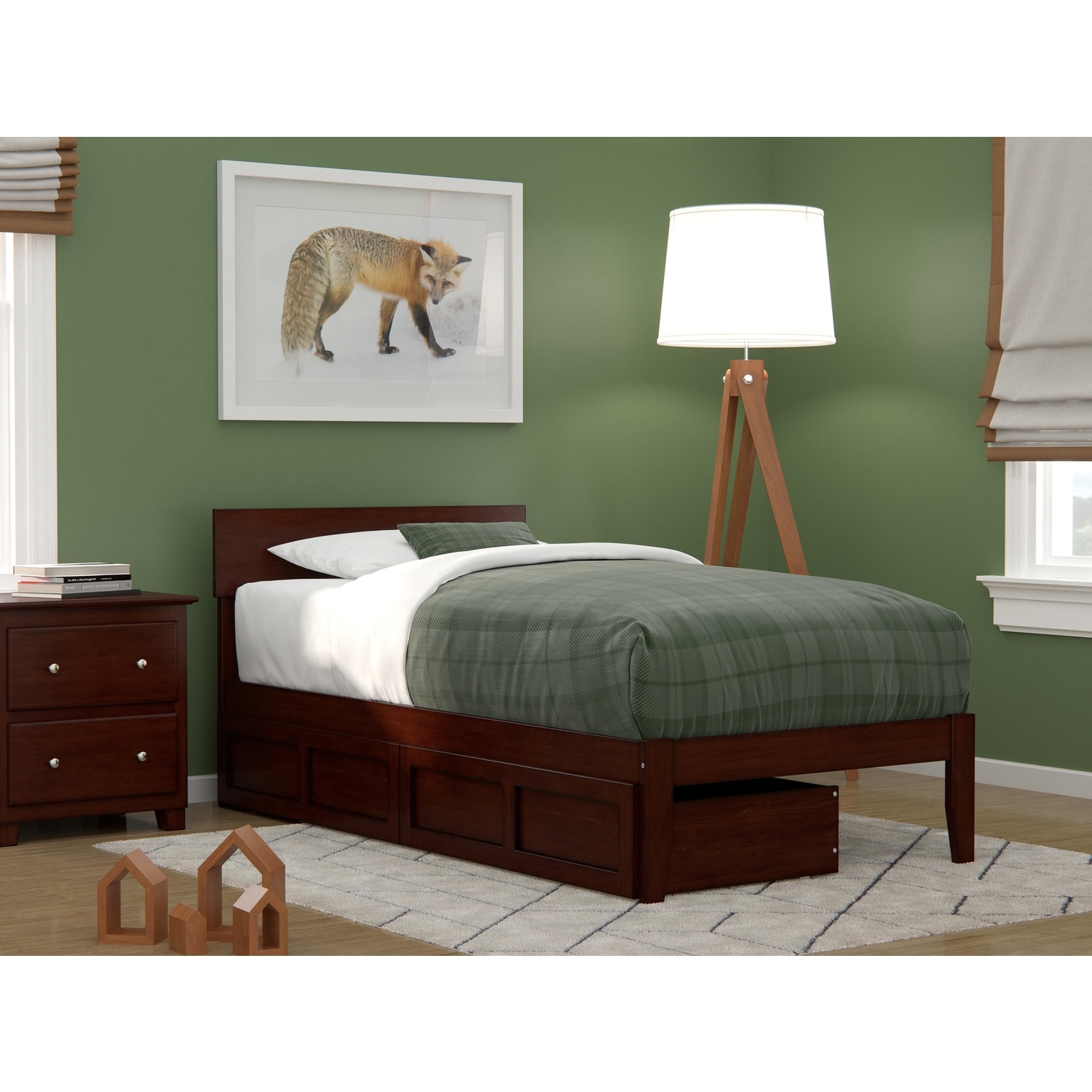 Twin Platform Bed with Storage - Modern Walnut Bed Frame & Headboard - No Box Spring Needed