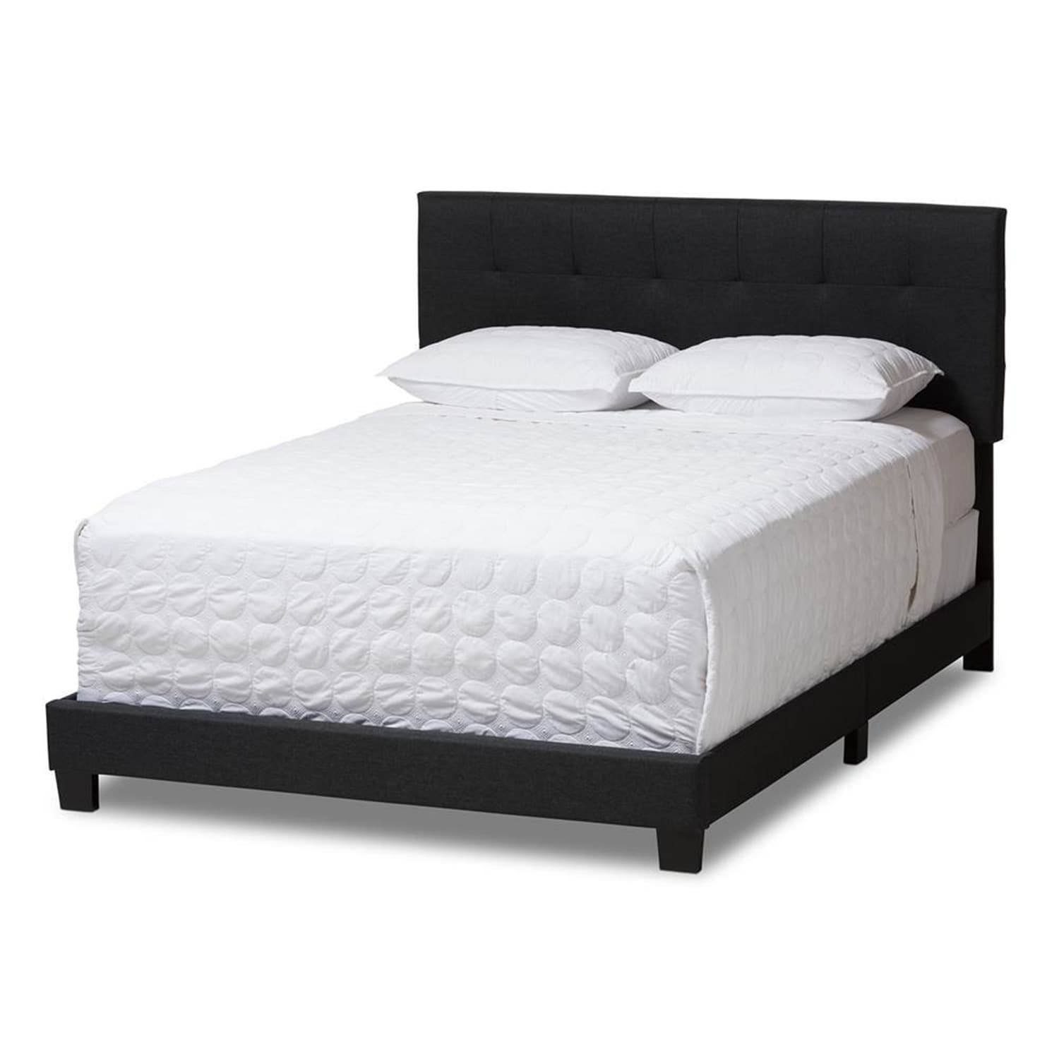 Queen Size Bed with Padded Headboard - Charcoal Grey Fabric Platform Bed Frame, Modern Design