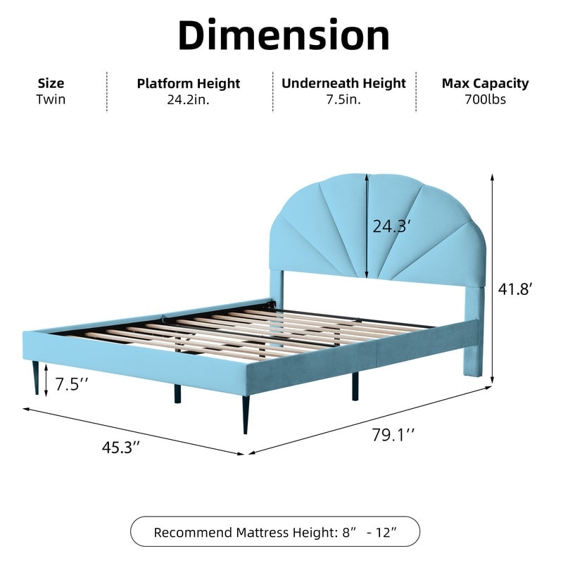 Upholstered Bed with Unique Seashell Headboard