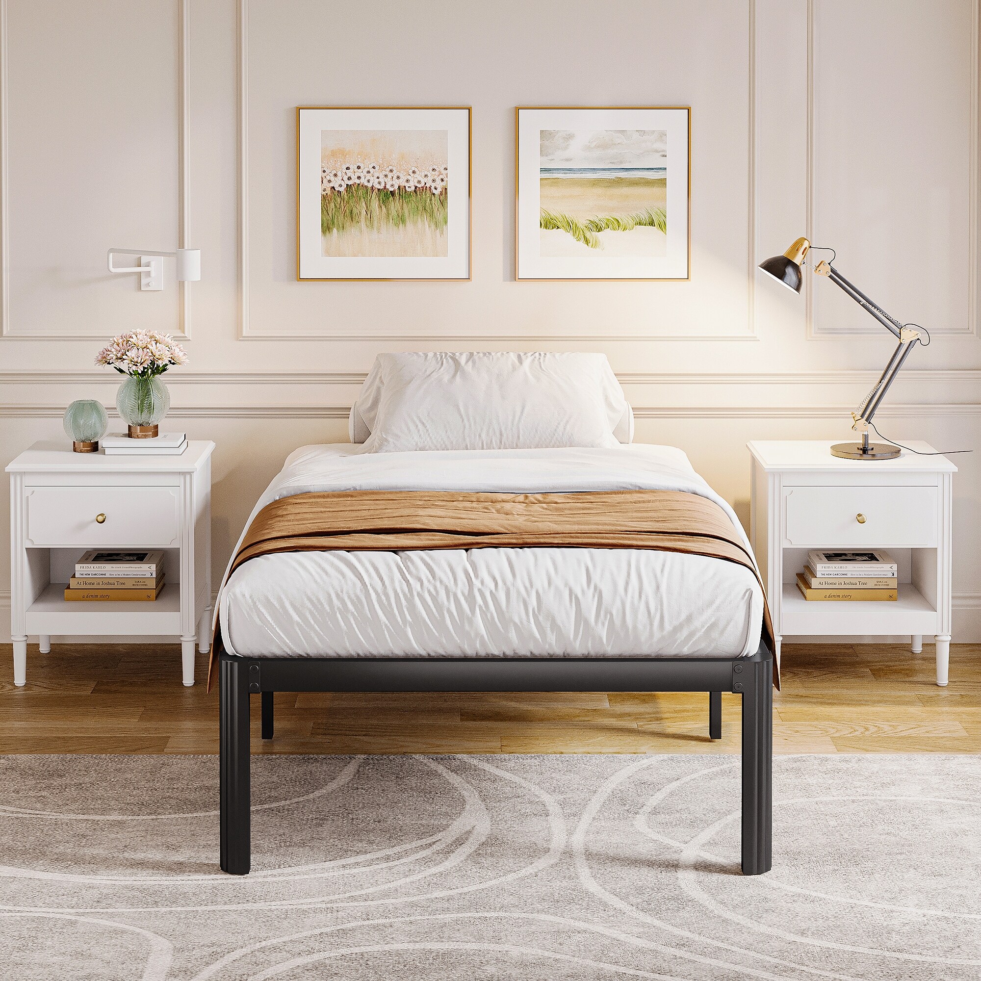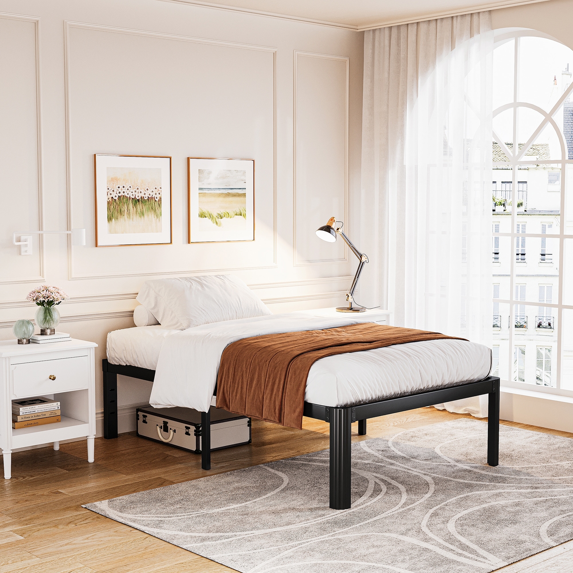 14" Heavy Duty Metal Bed Frame with Round Corners, Box Spring Not Required, Noise Free