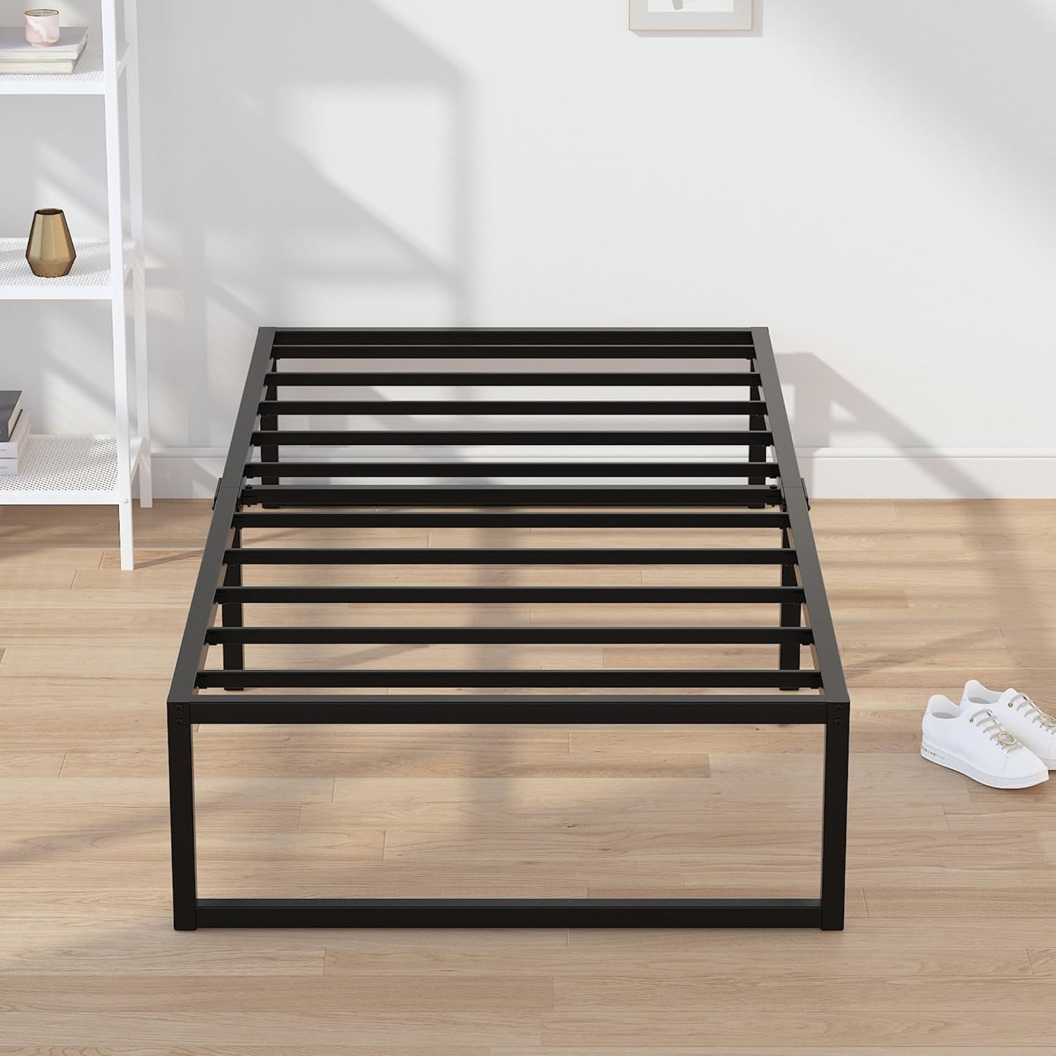 14 Inch Narrow Twin Bed Frame, Heavy Duty Metal Platform, Noise Free, Easy Assembly, Black