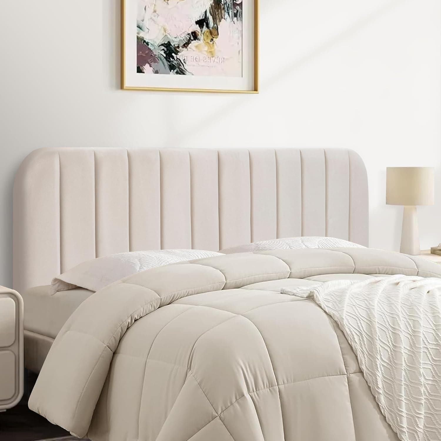 Queen Size Wall-Mounted Upholstered Bed Headboard with Linen Fabric, Beige