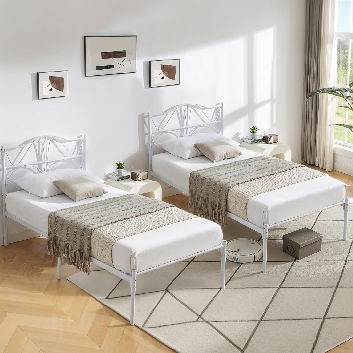 Twin Size Metal Bed Frame with Headboard, Sturdy Steel Slats, Noise-Free, Easy Assembly, Underbed Storage
