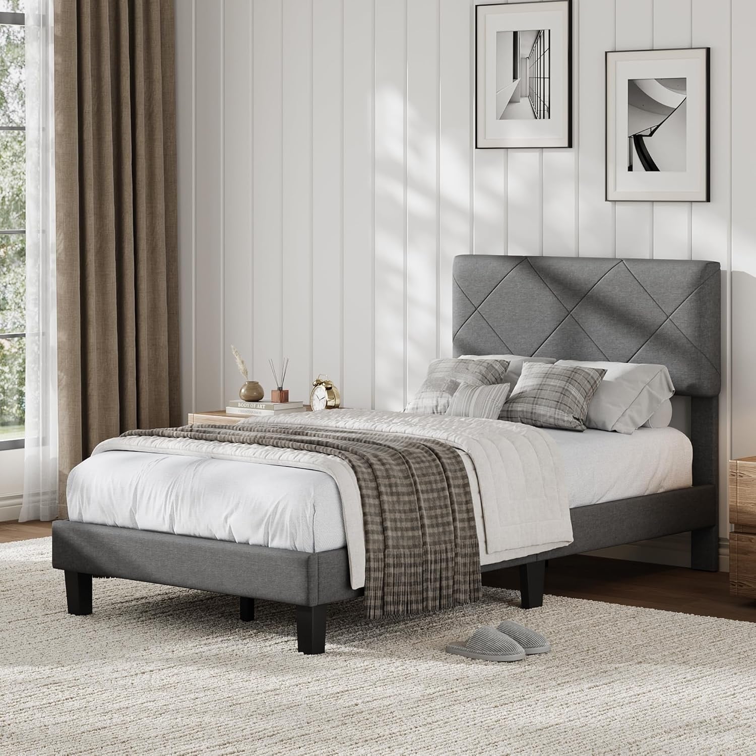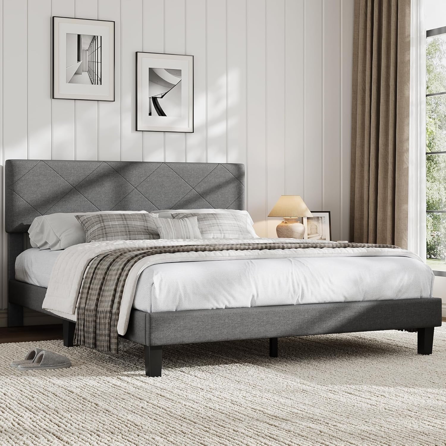 Bed Frame with Upholstered Headboard,Platform Bed Frame with Wooden Slat Support