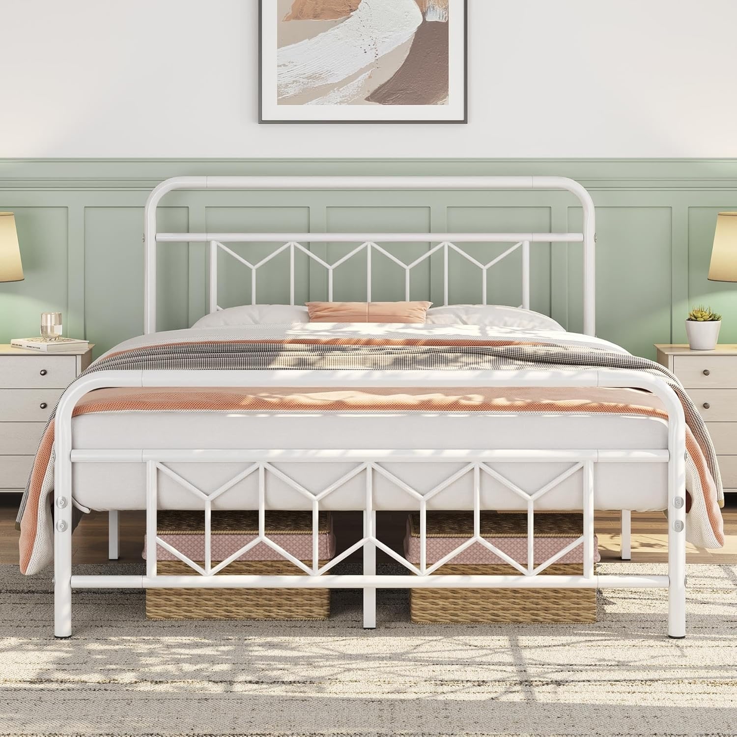 Vintage Style Full Metal Platform Bed with Headboard, Under Bed Storage, and Strong Slat Support