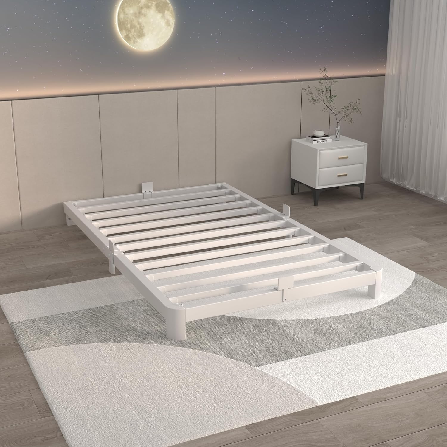 4 Inch White Twin Metal Platform Bed Frame, Heavy Duty Steel Support, No Box Spring Needed, Anti-Slip, Easy Assembly
