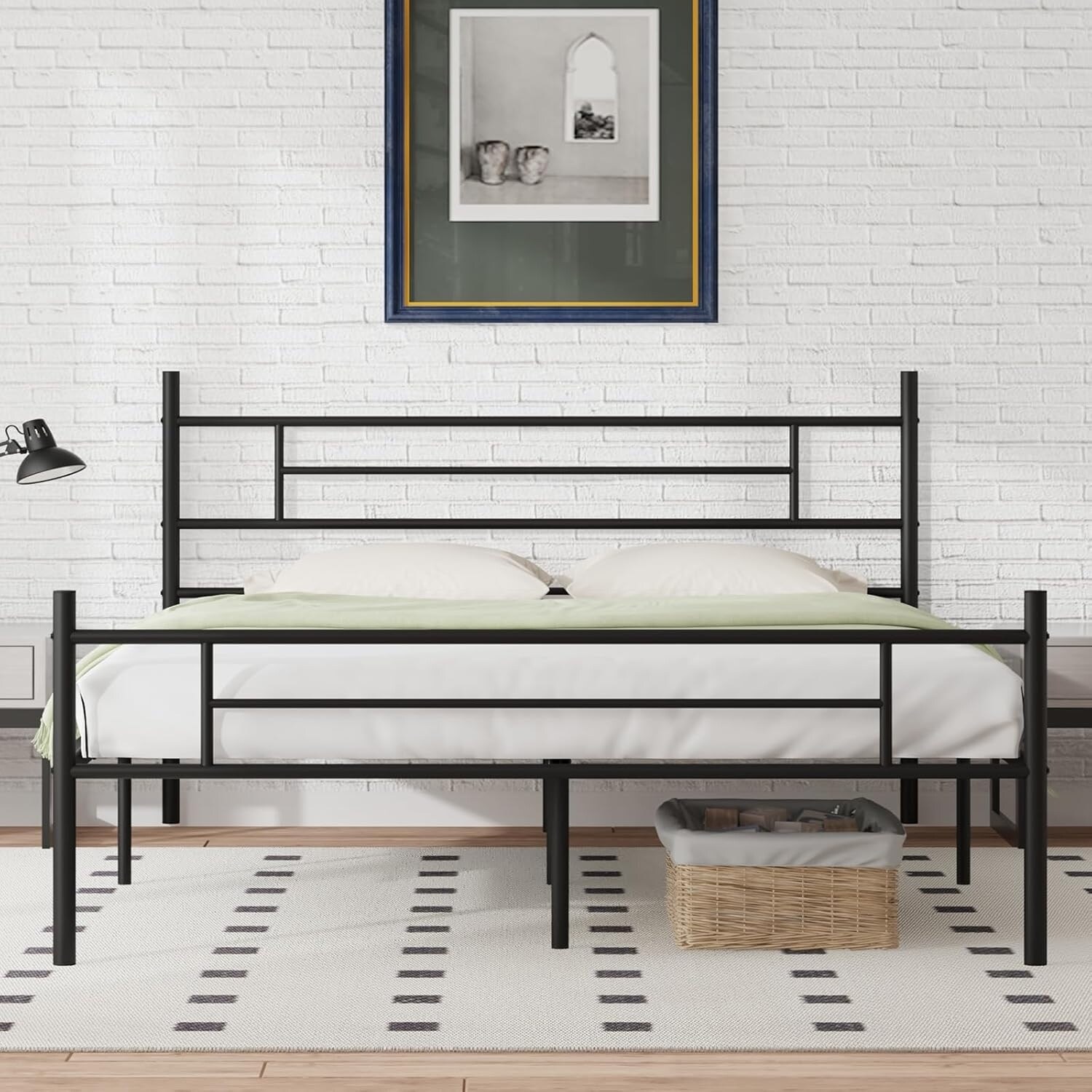 King Size Bed Frame with Headboard, Footboard, and Under Bed Storage, 14 Inch Metal Platform, No Box Spring Needed