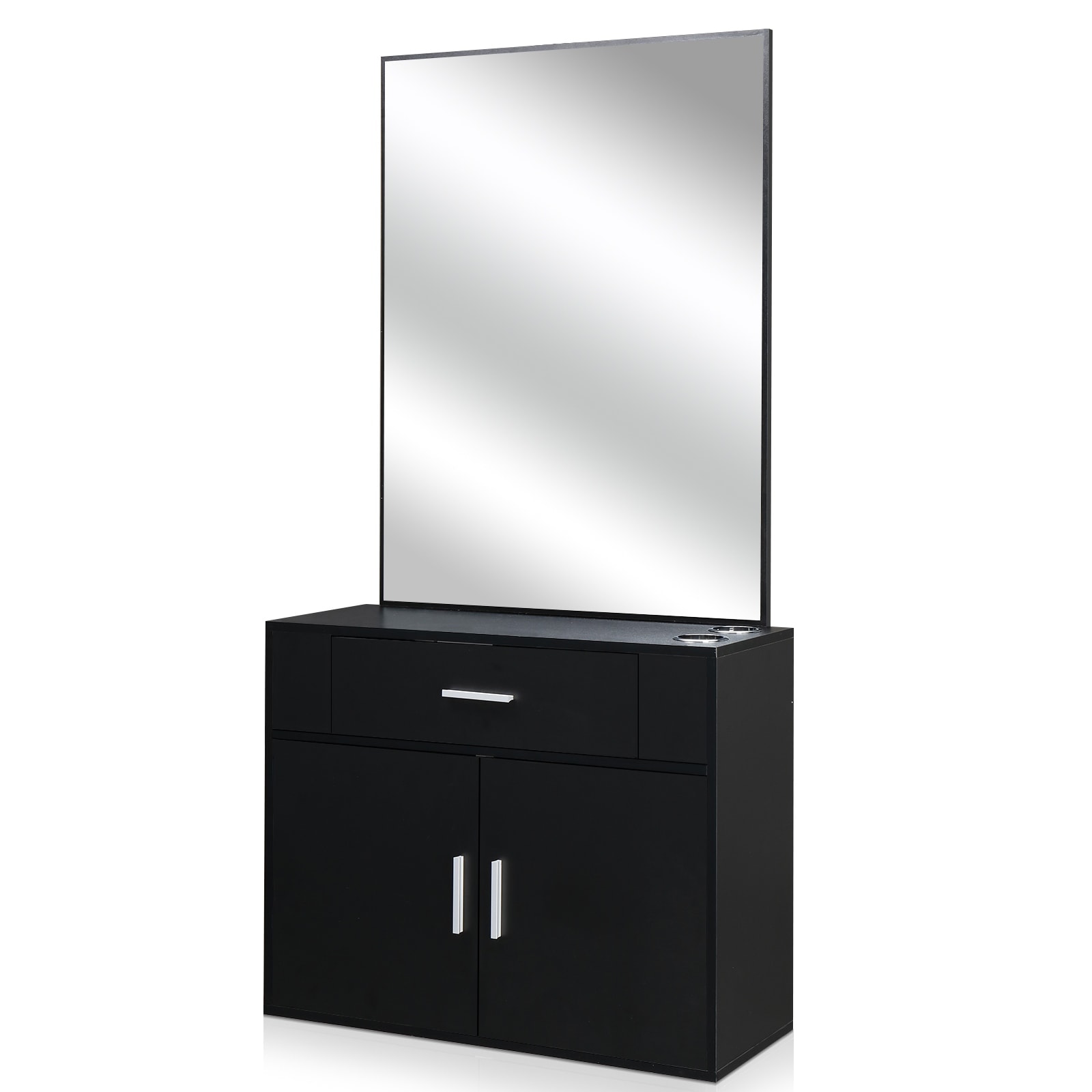 Black Wall Mounted Hair Styling Station with Mirror Drawer and Storage Cabinet for Salon Use - 59.4” x 29.6” x 11.8" (L x W x H)