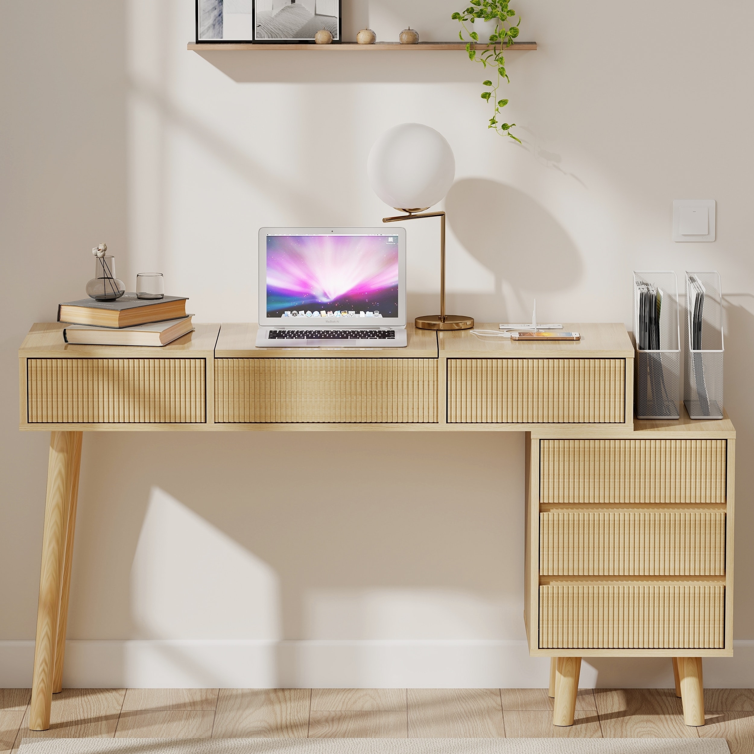23.6" Particle Board Makeup Vanity with 3-Tier Shelf & Drawer