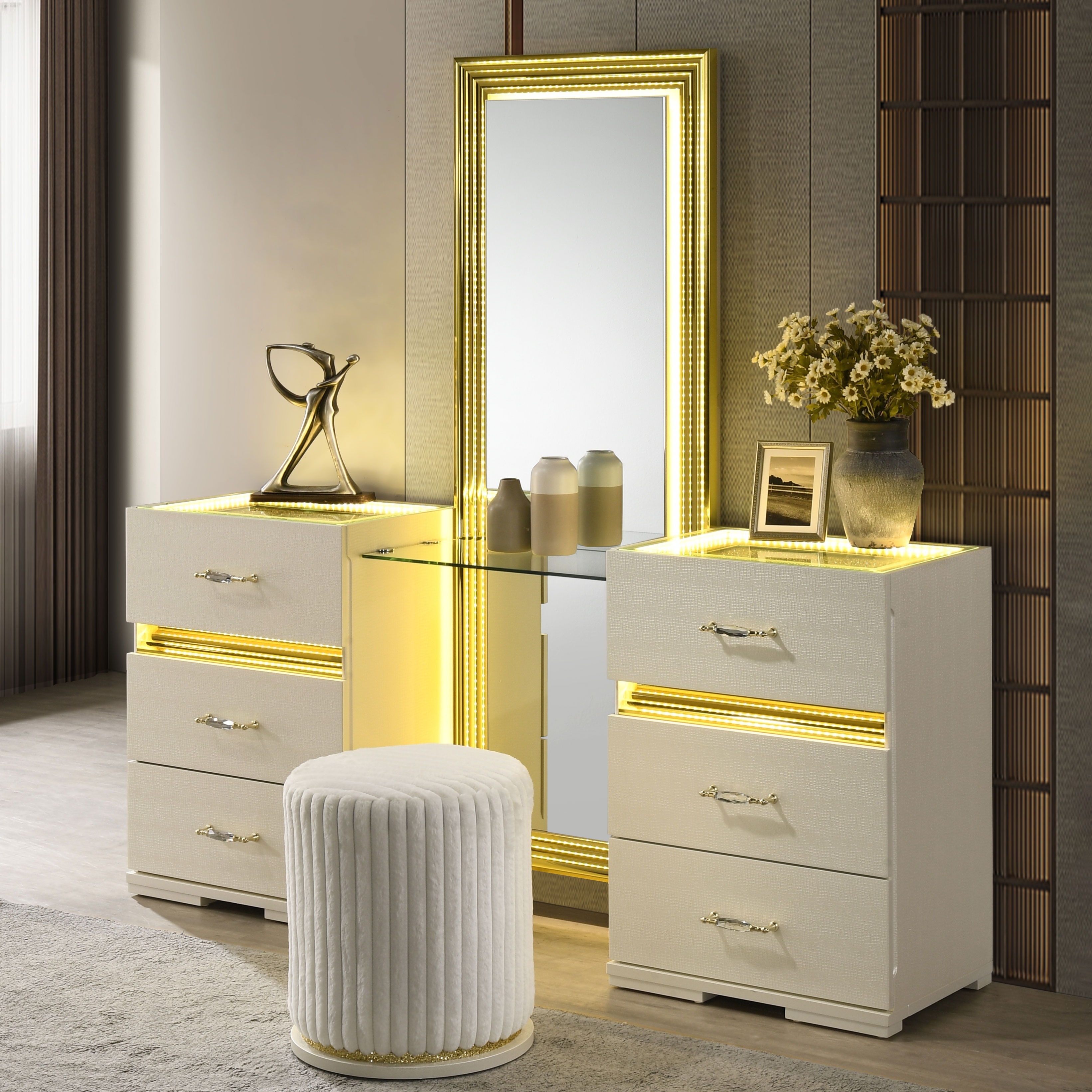 Vanity Dresser with Mirror and Stool Set Storage Drawers Luxury Furniture