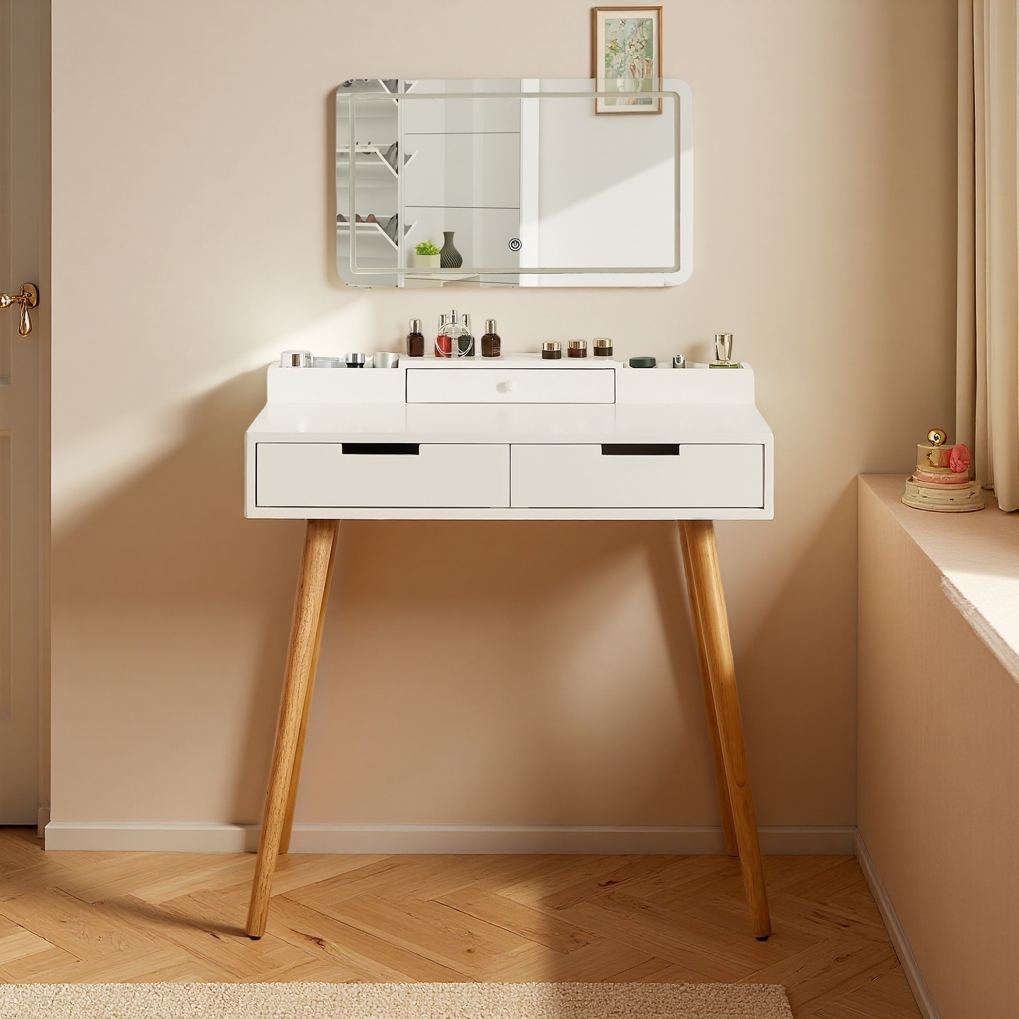 LED Mirror Vanity Dressing Table with Lights for Women & Girls - 3-Color Adjustable Light Strips, 2 Large Drawers