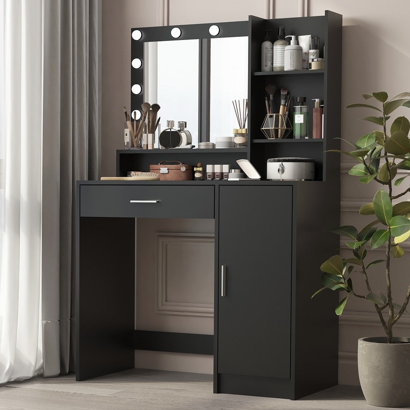 4 Drawers Vanity Table Dressing Table with Touch Switch-Black - 29.5"(L) x 16"(W) x 57"(H)