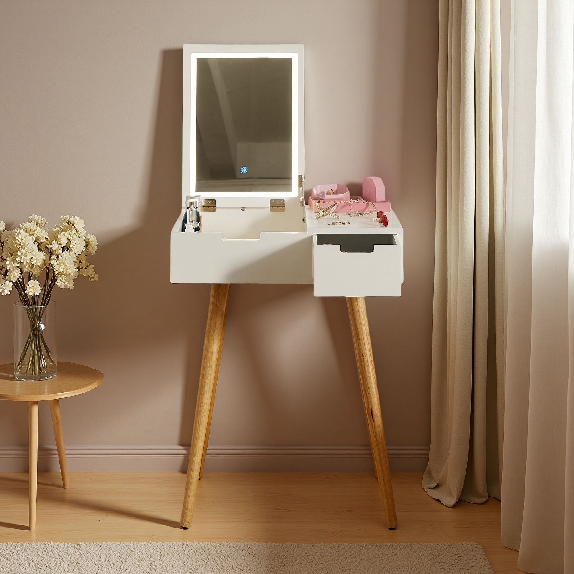23.6" Makeup Vanity with Flip-Top LED Mirror & 2 Drawers