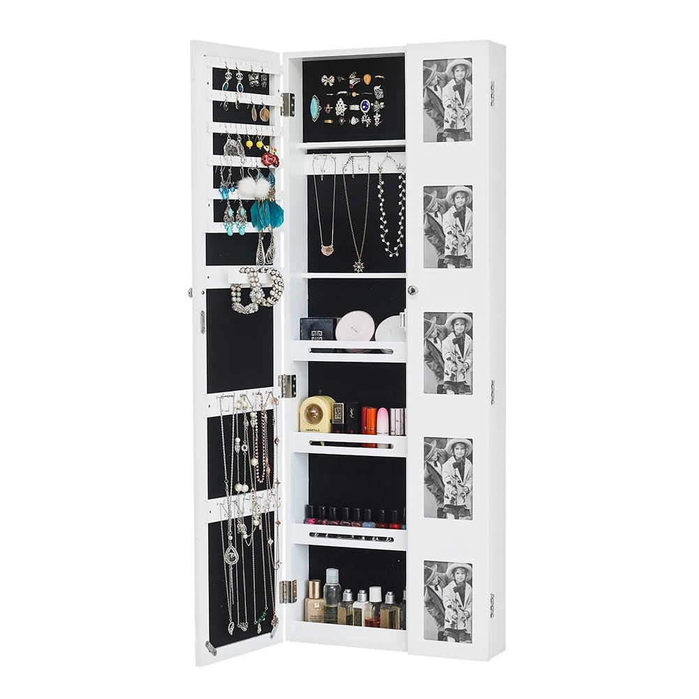Wooden Wall Mounted Jewelry Mirror Cabinet with Photo Frame