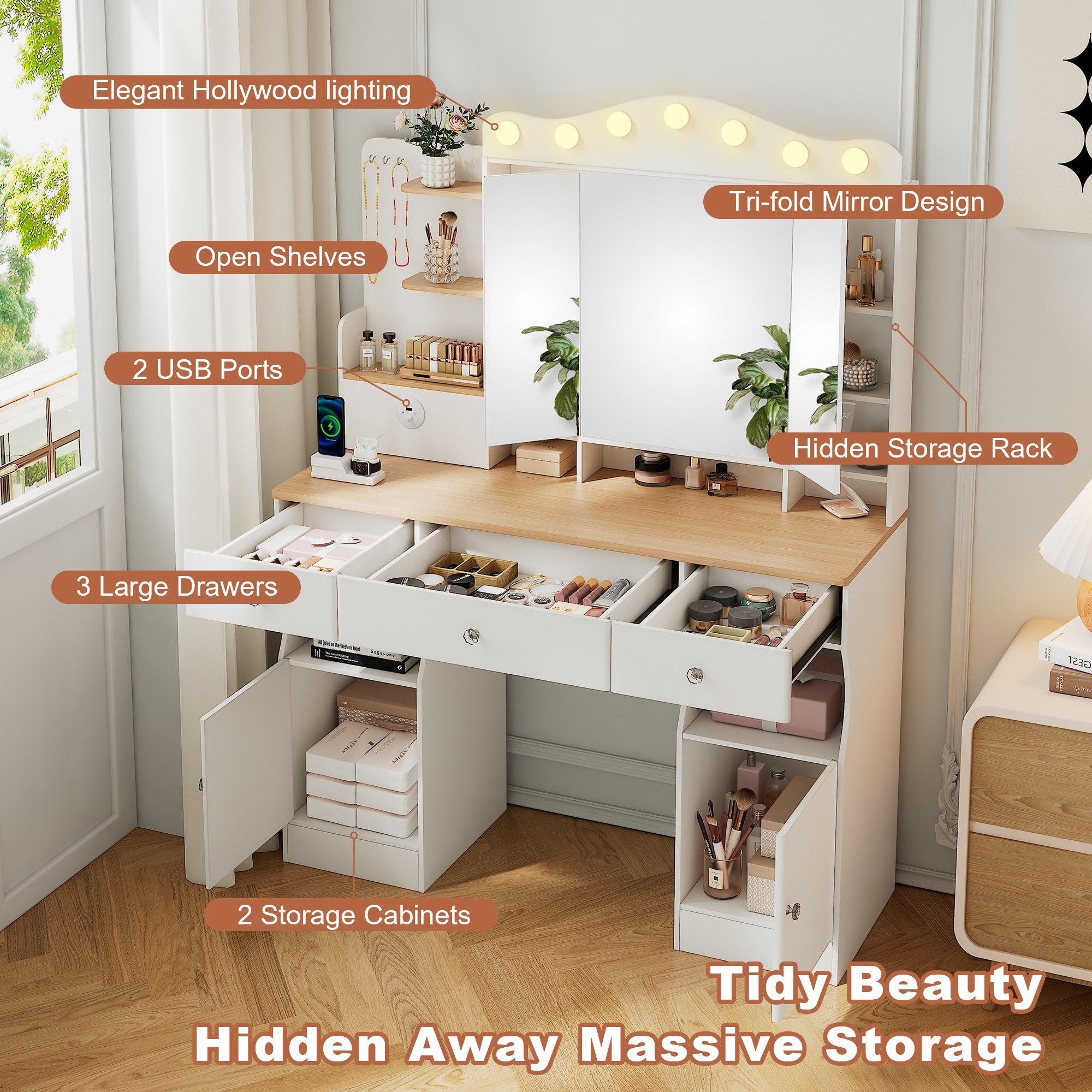 Makeup Vanity Desk with Mirror and Adjustable Lights Perfect for Any Beauty Lover - 35.4"L x 20.5"W x 54.3"H