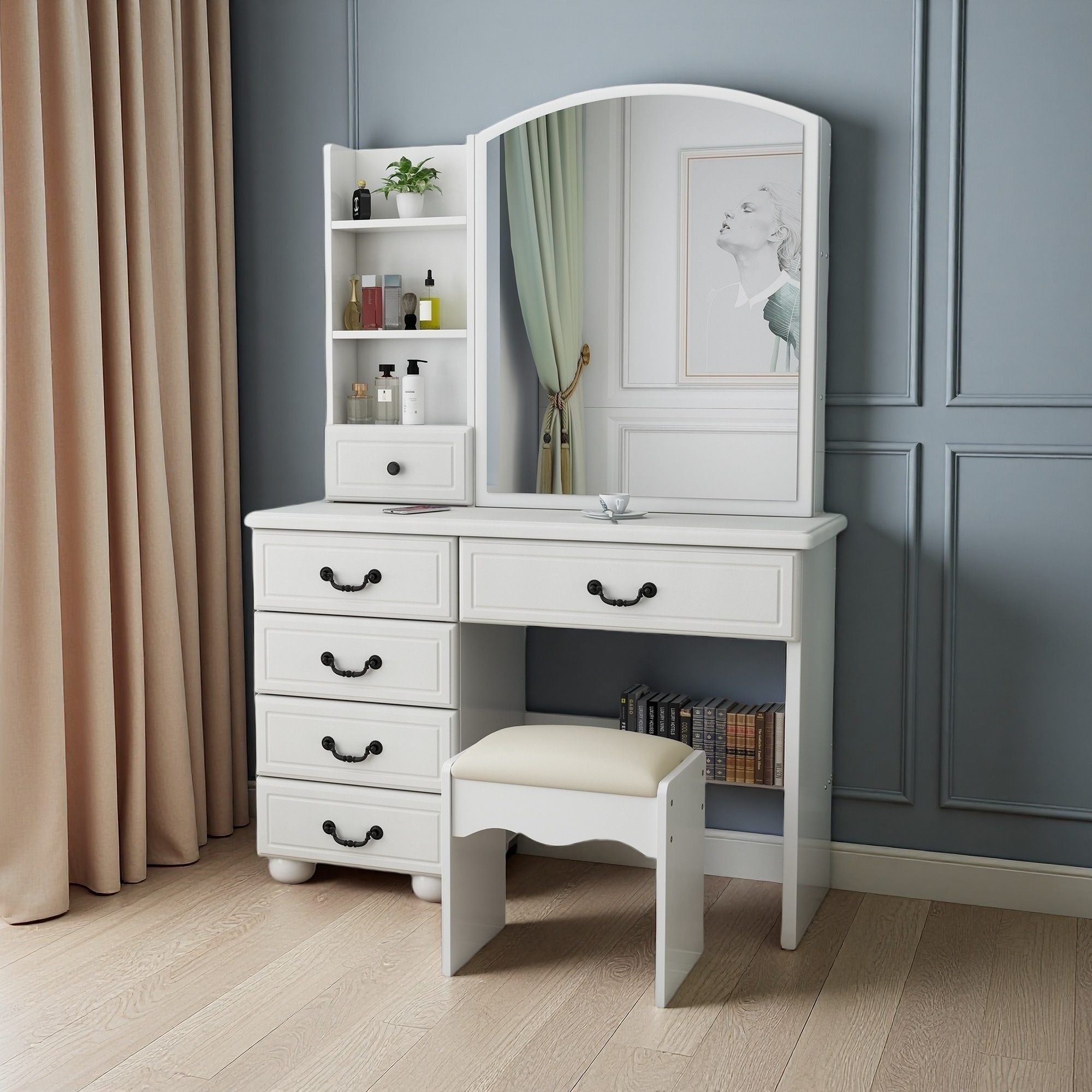 Compact and Stylish Vanity Table with Versatile Features for Beauty Enhancement