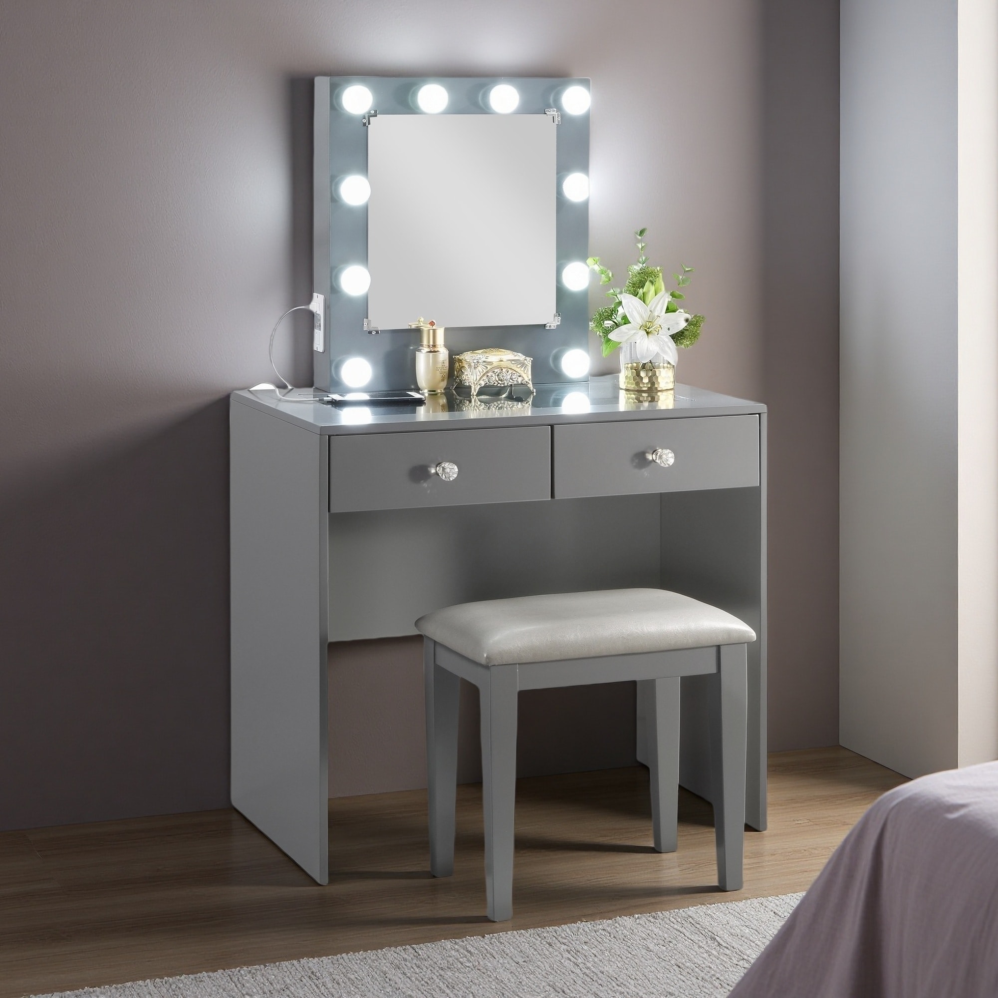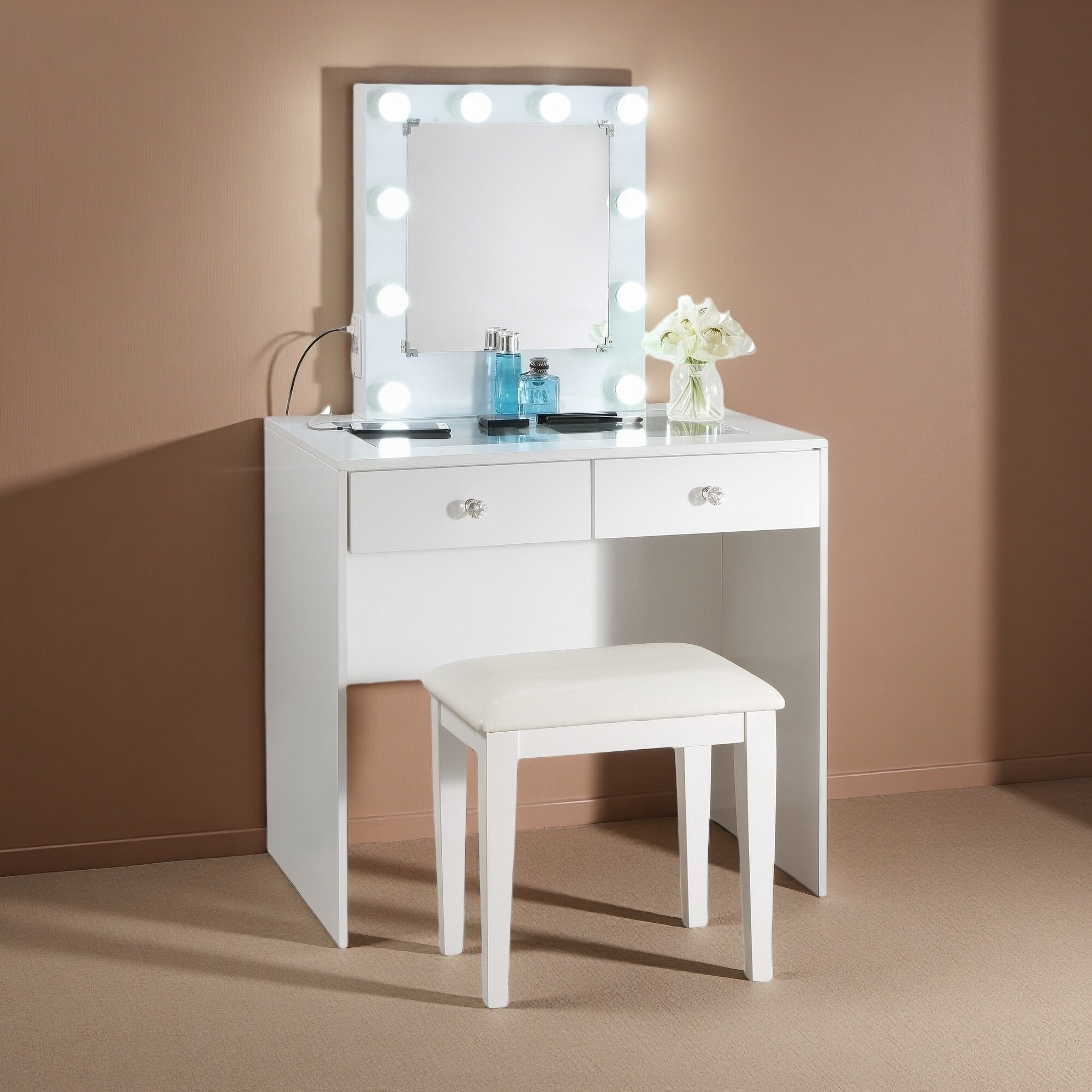 Wood LED Makeup Vanity Set with USB/Outlet & 2 Drawers