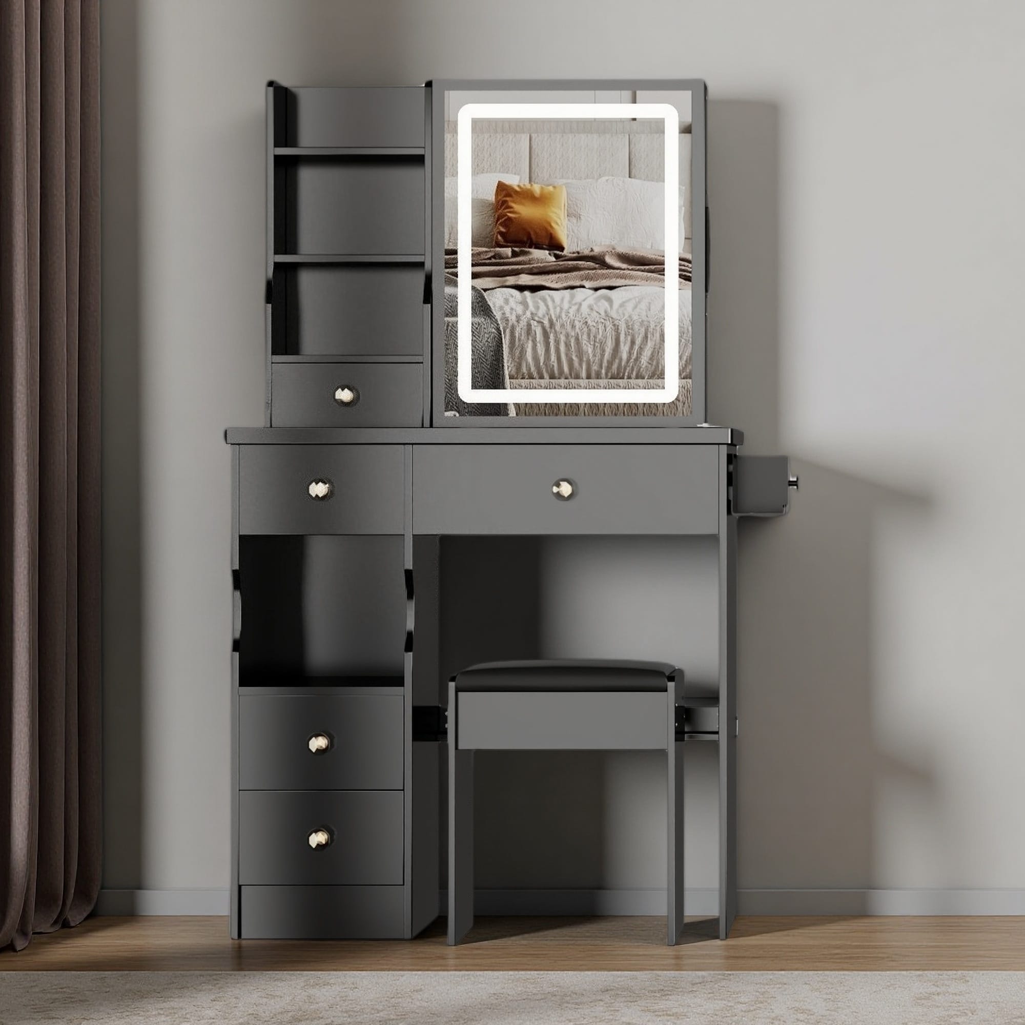 29.2" Makeup Vanity Set with Sliding LED Mirror & Power Station