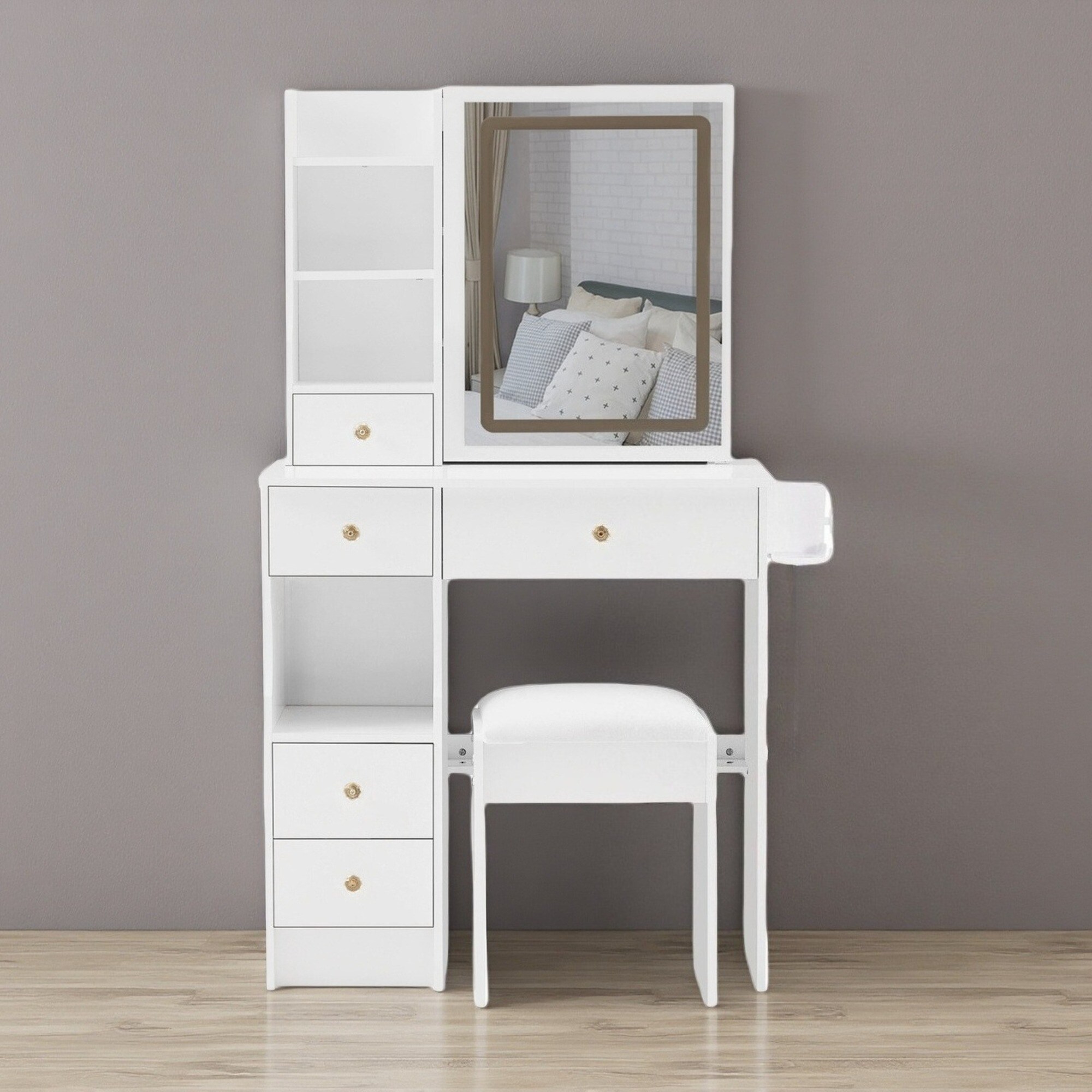 Vanity Dresser with Mirror and Stool Set Storage Drawers Luxury Furniture