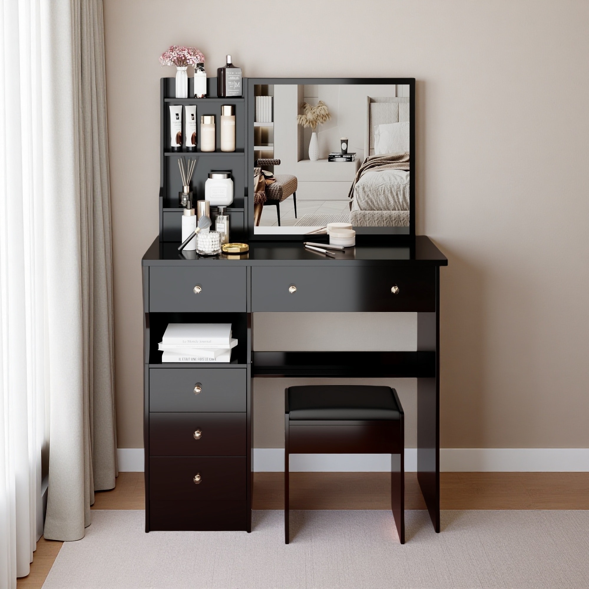 37" Makeup Vanity with Sliding Mirror, Left Drawer & Multi-Layer Storage